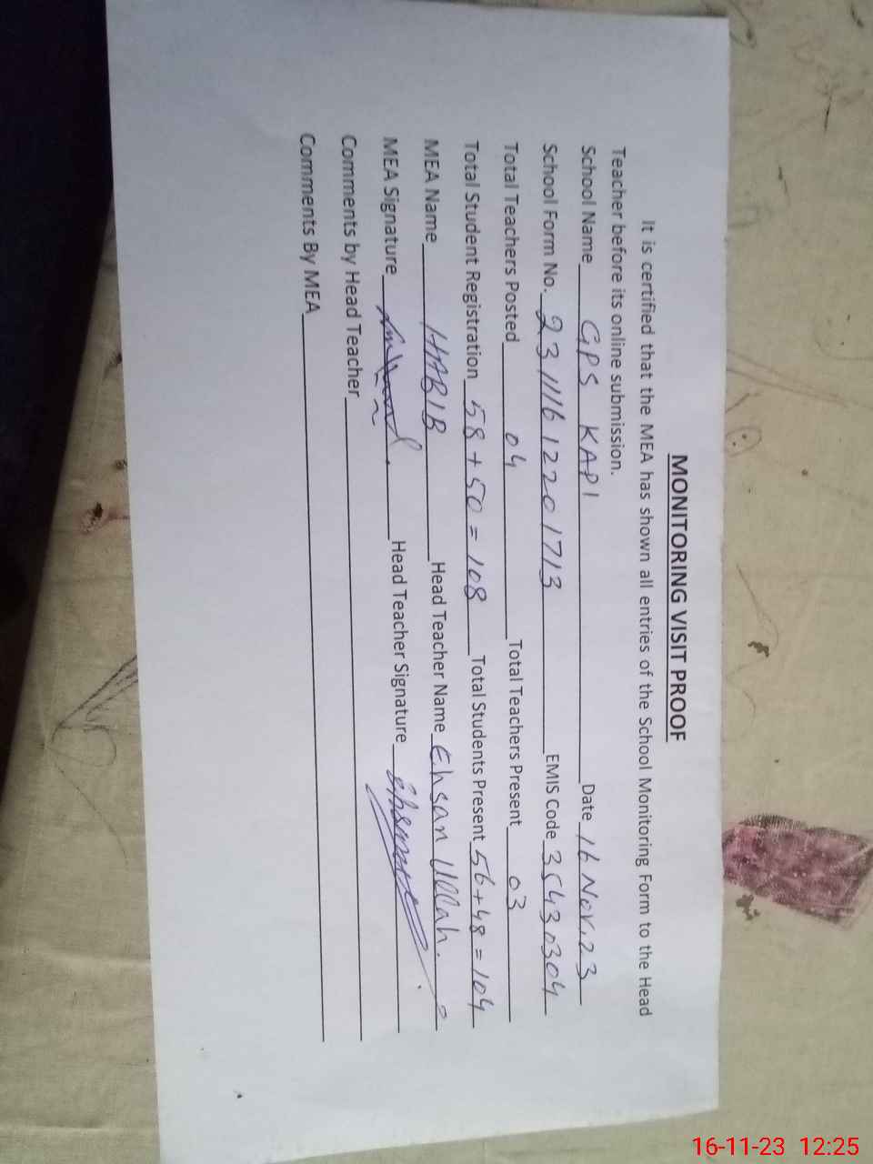| EMIS Code: 35430304 | Name of School: GPS KAPI | |||