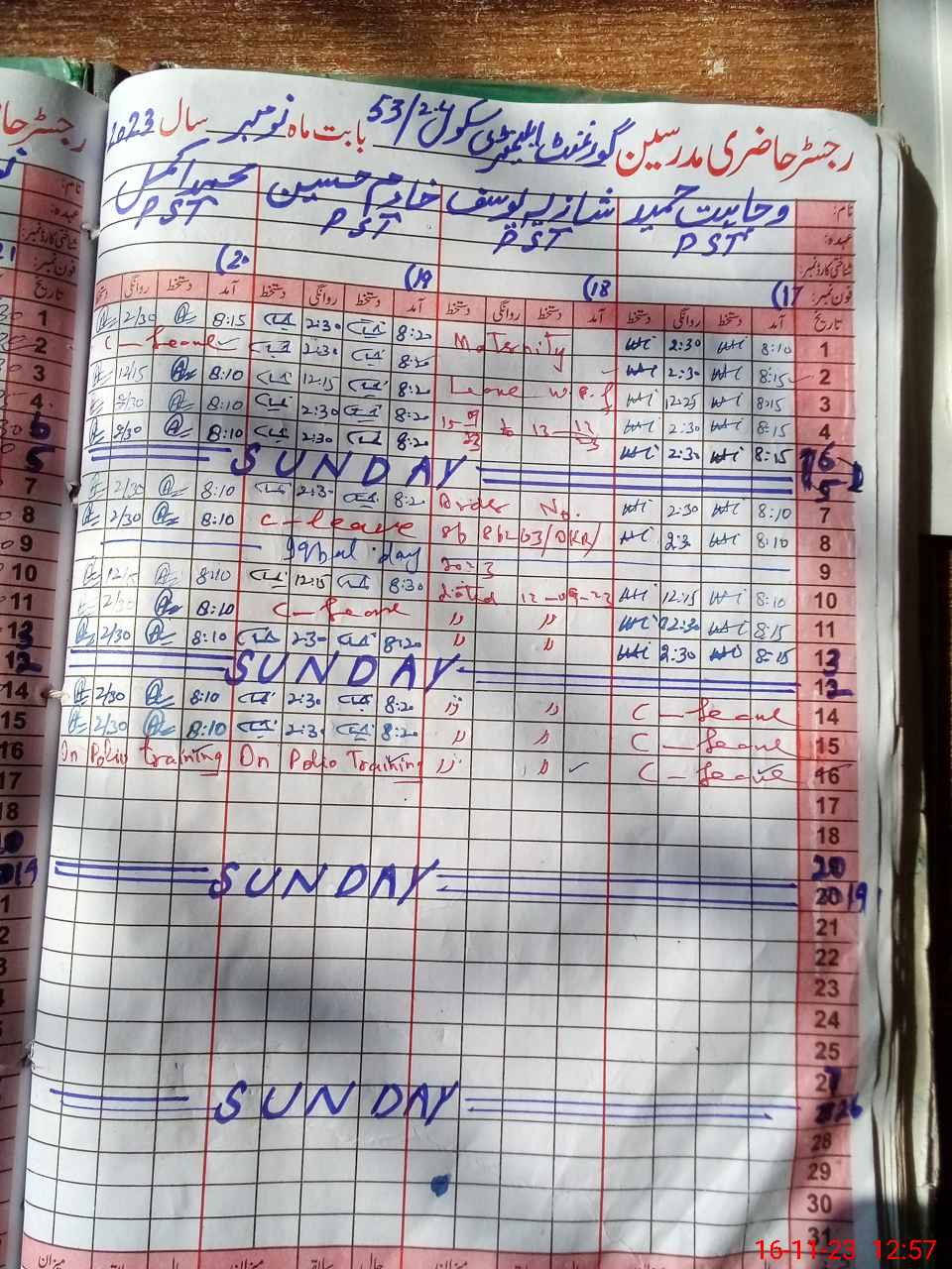 | CNIC | Full Name | Designation | R/C | Absence During Last Calender Month |
