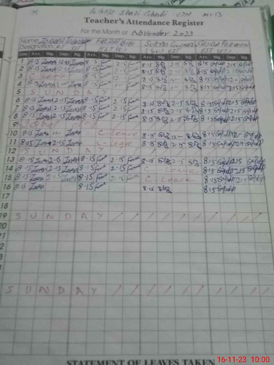 | 31**** | Te**** Sa**** | 2 | 2 | 0 | 0 | 0 | 0 | 0 | 0 | 0 | 0 | 0 | Absent (Un-Authorized) |