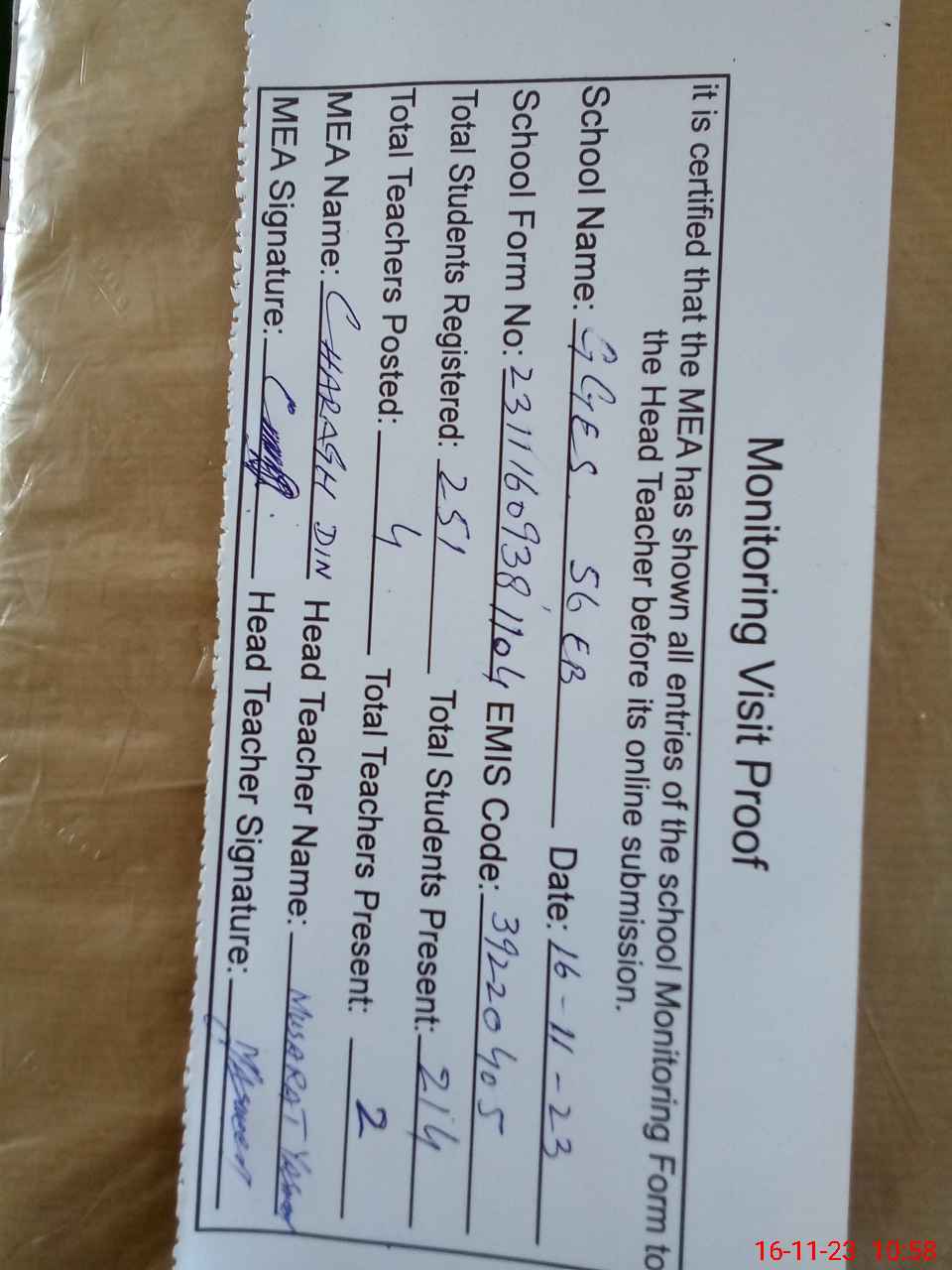 | EMIS Code: 39220405 | Name of School: GGES 56 EB PO DILU WALA BANGLA | |||