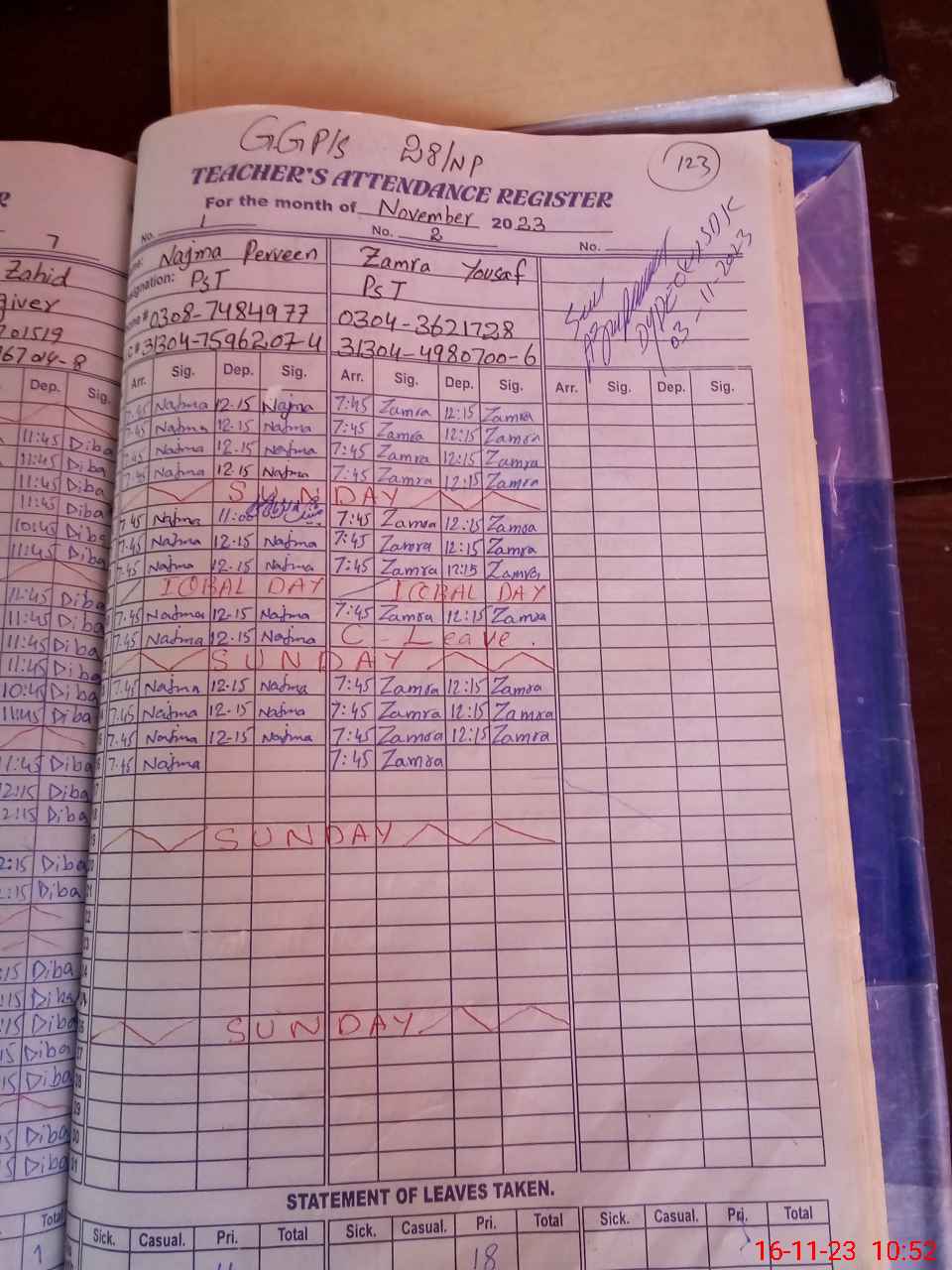 | Leave | Duty | Absent | Maternity | Medical | Ex- Pak |