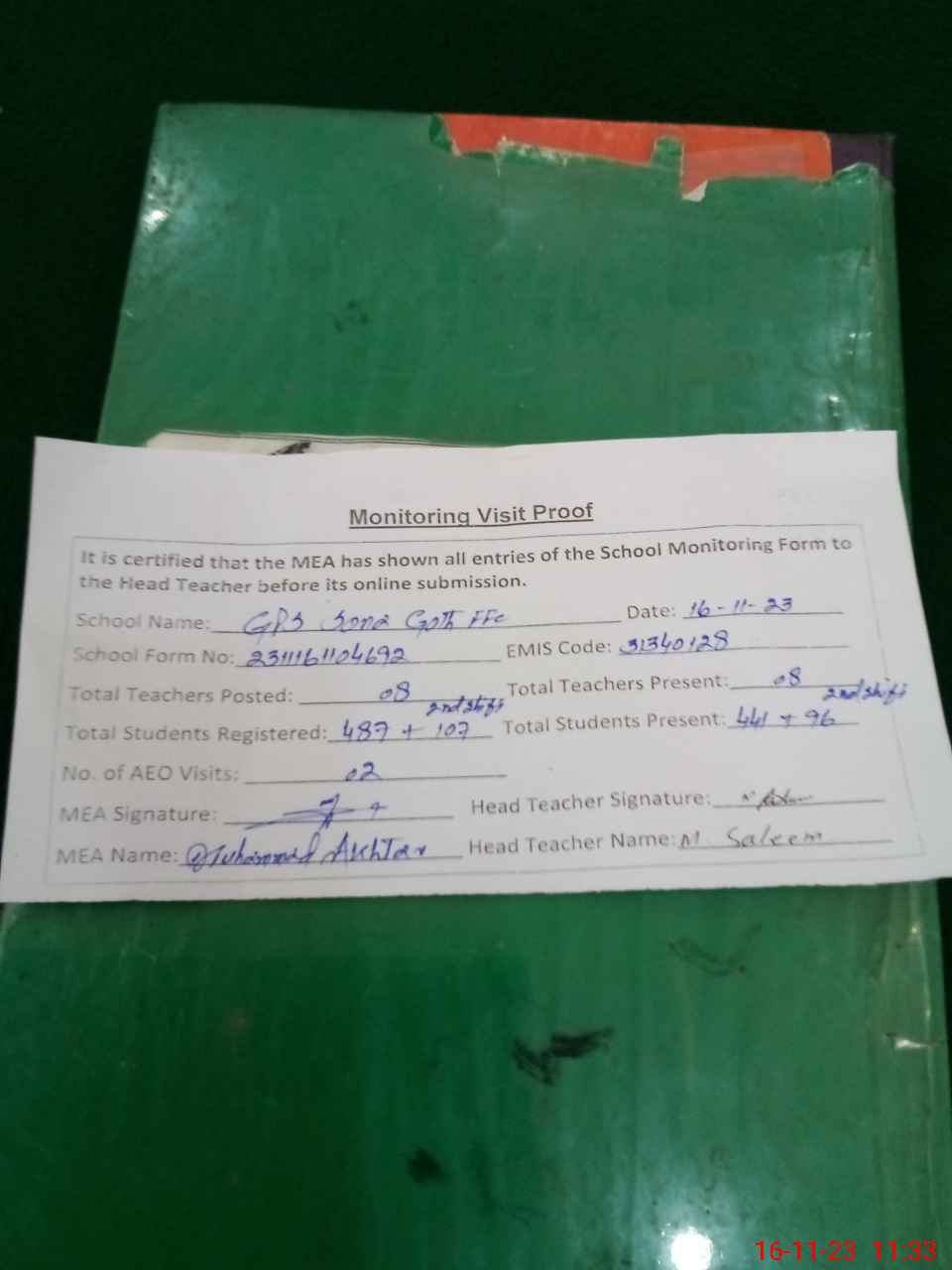| EMIS Code: 31340128 | Name of School: GPS SONA GOTH FFC | |||