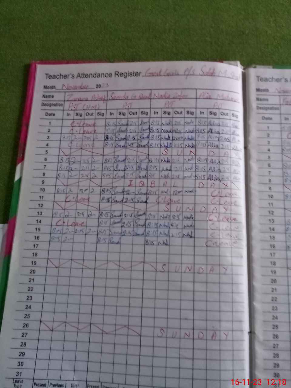 | CNIC | Full Name | Designation | R/C | Absence During Last Calender Month |