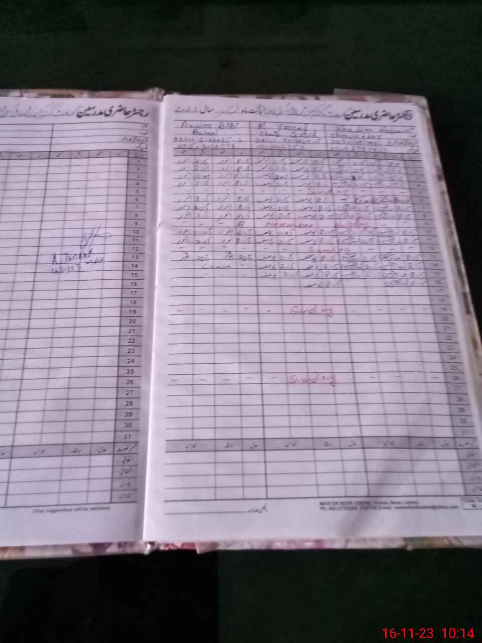 | CNIC | Full Name | Designation | R/C | Absence During Last Calender Month |