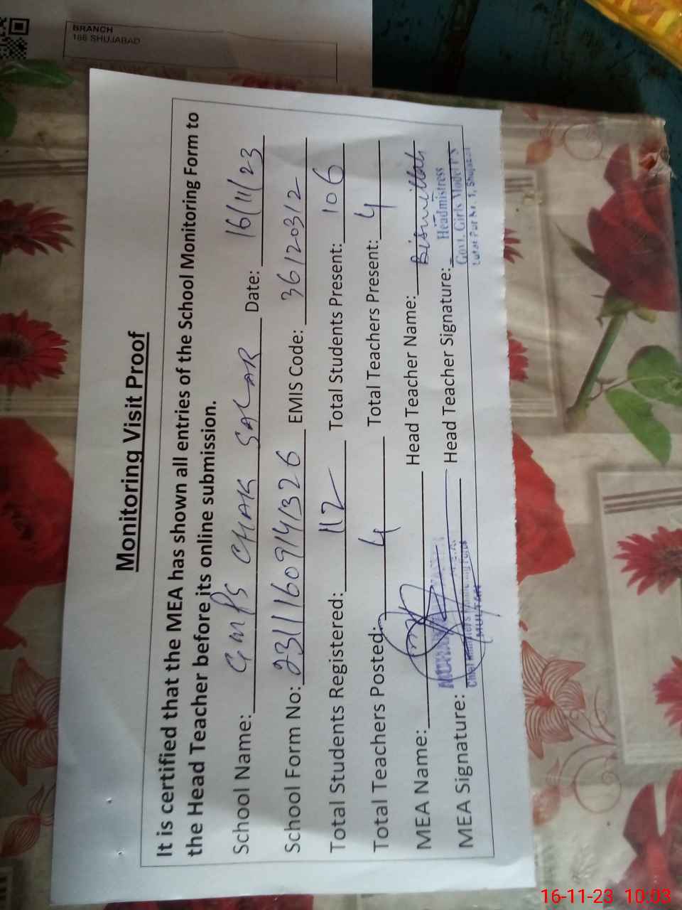 | EMIS Code: 36120312 | Name of School: GMPS CHAK SALAR | |||