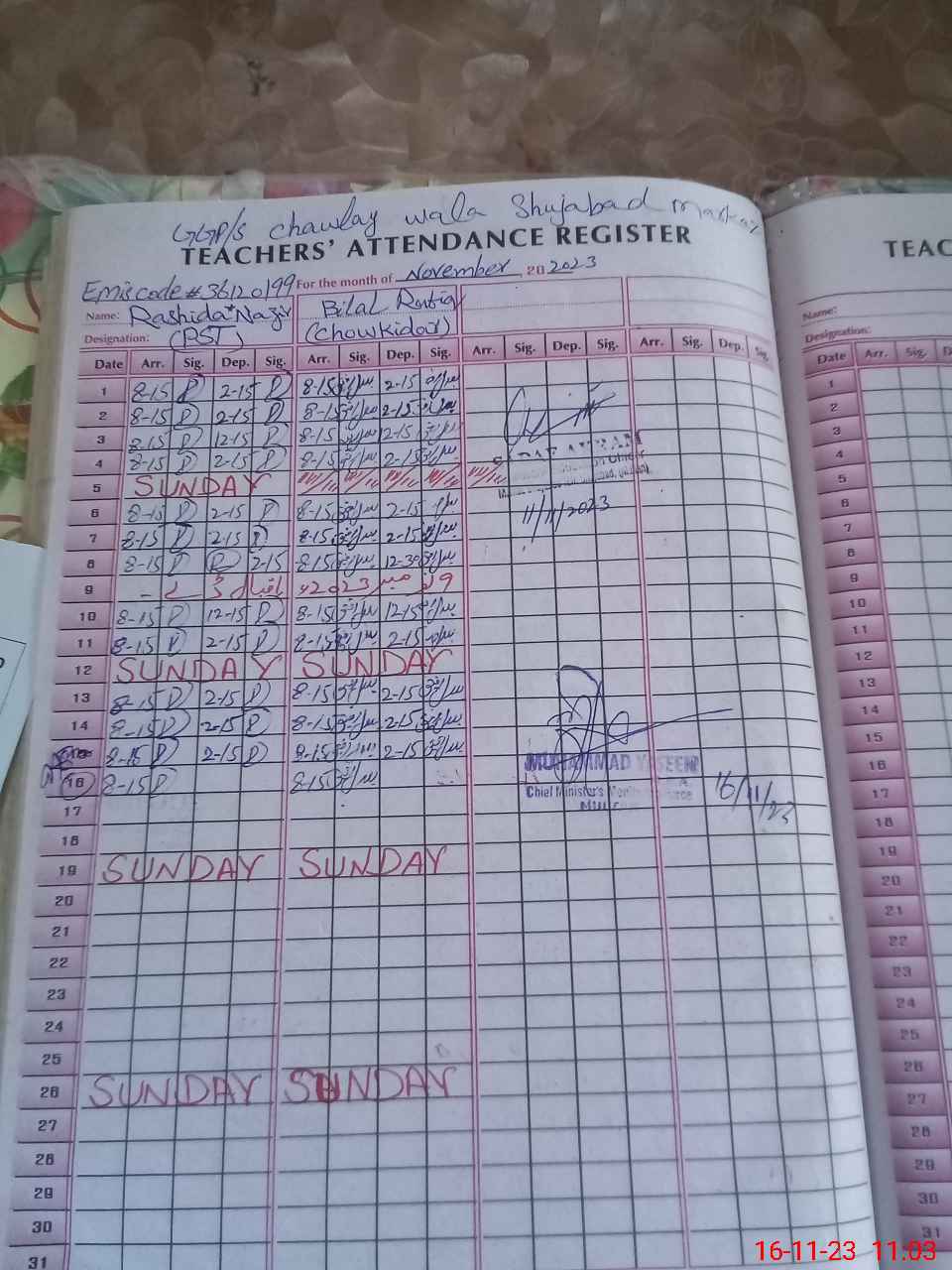 | CNIC | Full Name | Designation | R/C | Absence During Last Calender Month |
