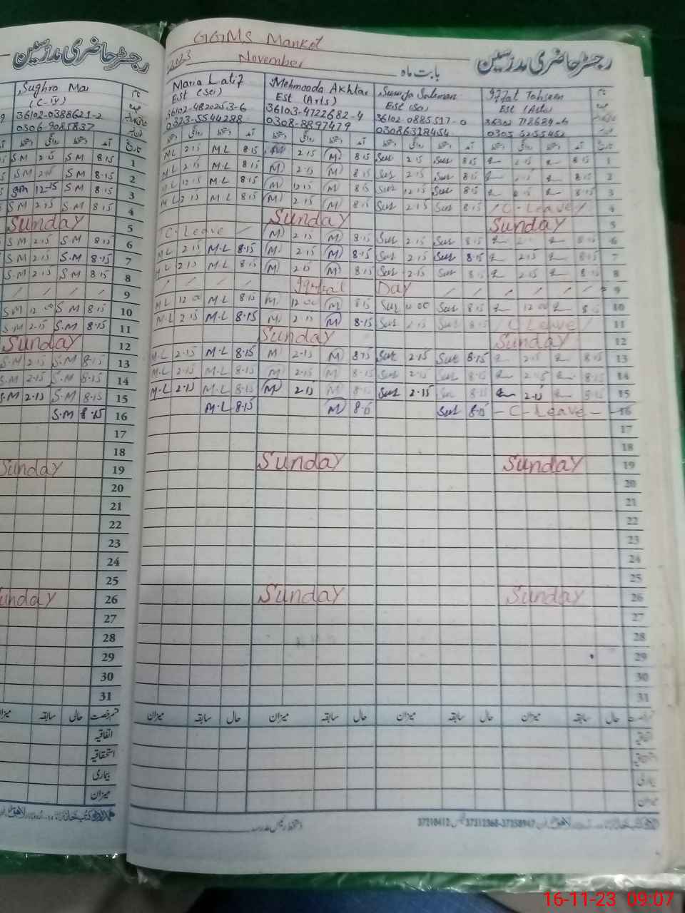 | CNIC | Full Name | Designation | R/C | Absence During Last Calender Month |