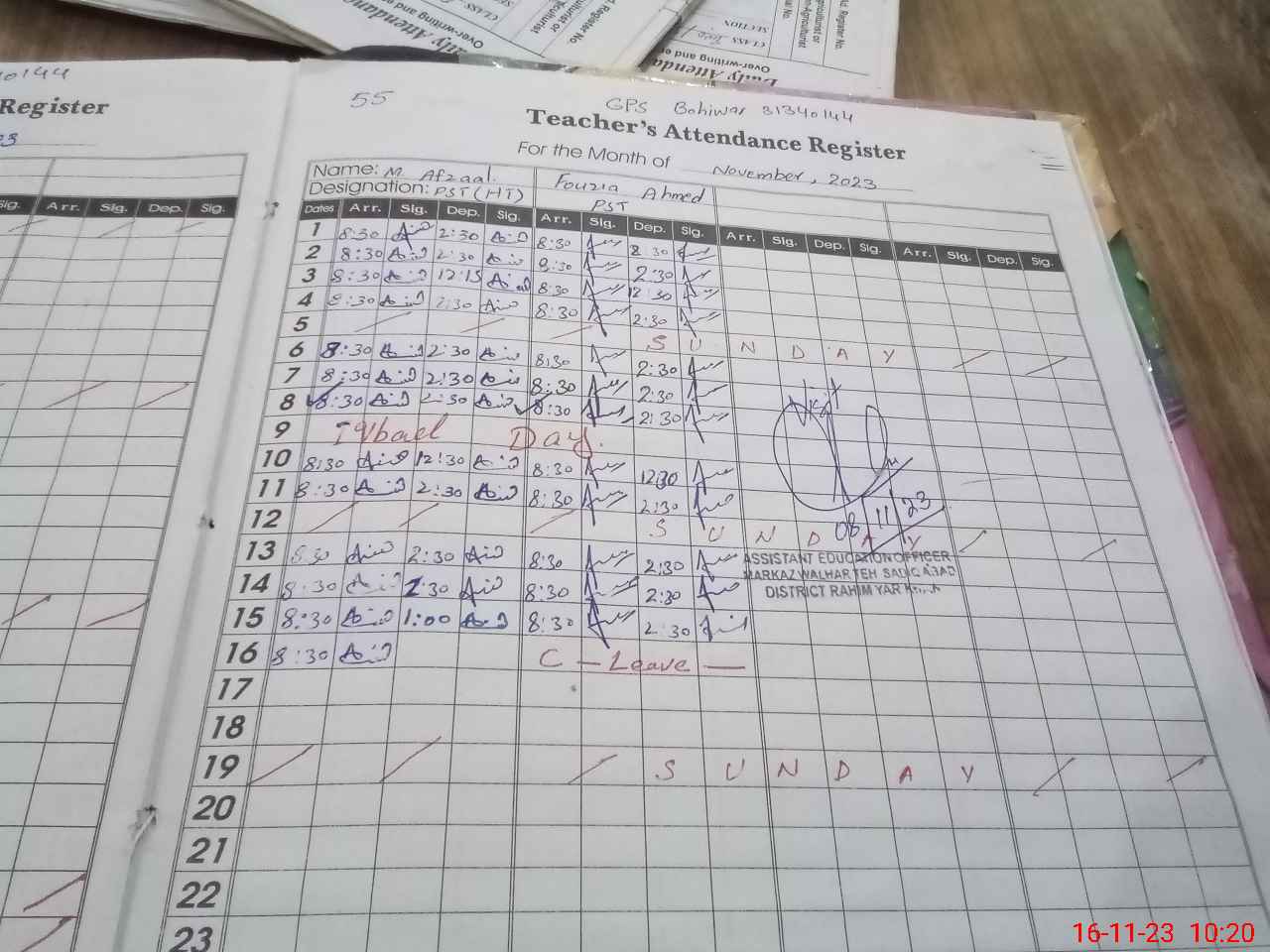 | Name: M.**** Designation: (School Headmaster's/Headmistress's) PST Phone/Cell Number: 03**** |