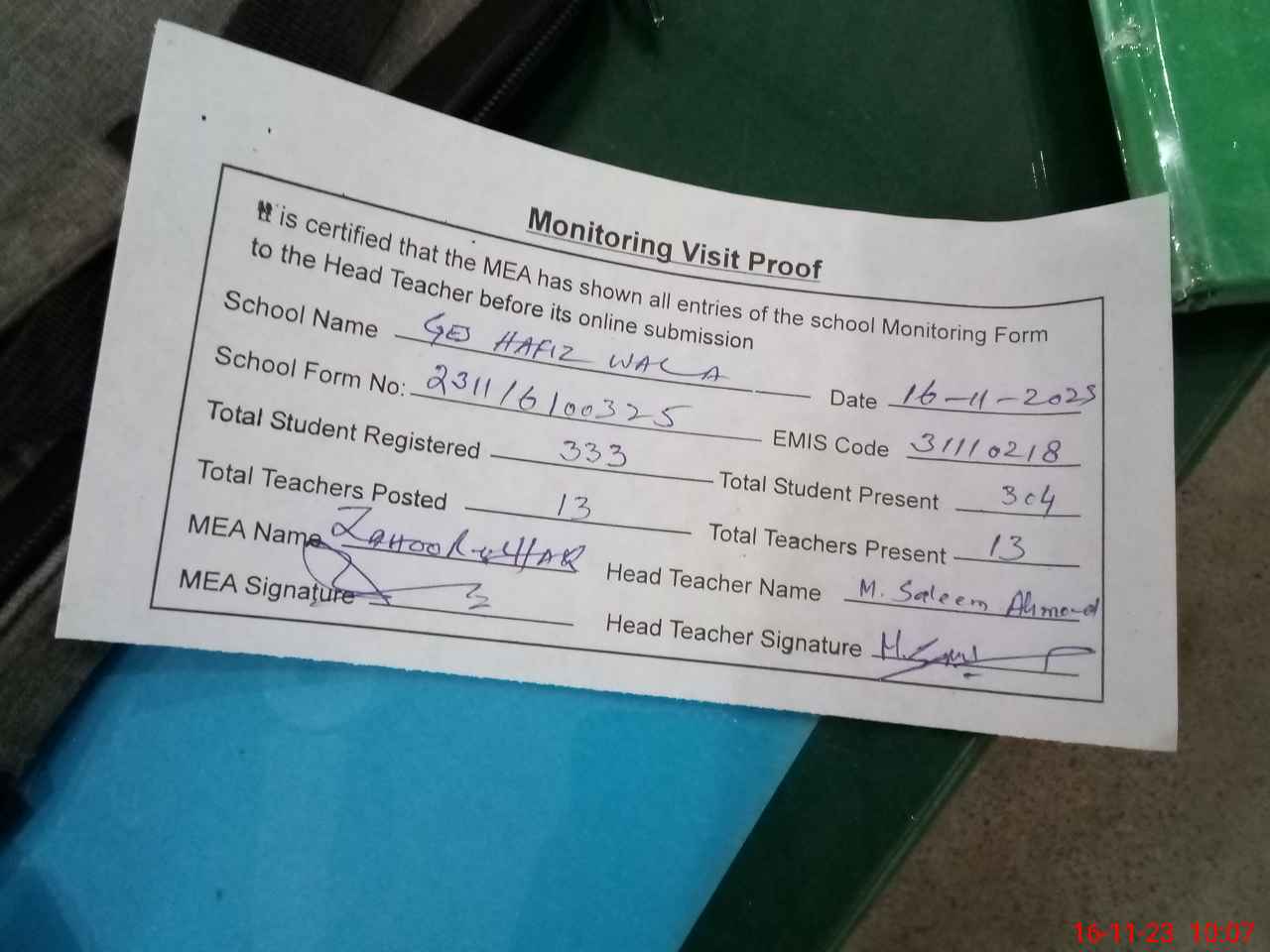 | EMIS Code: 31110218 | Name of School: GES HAFIZ WALA | |||