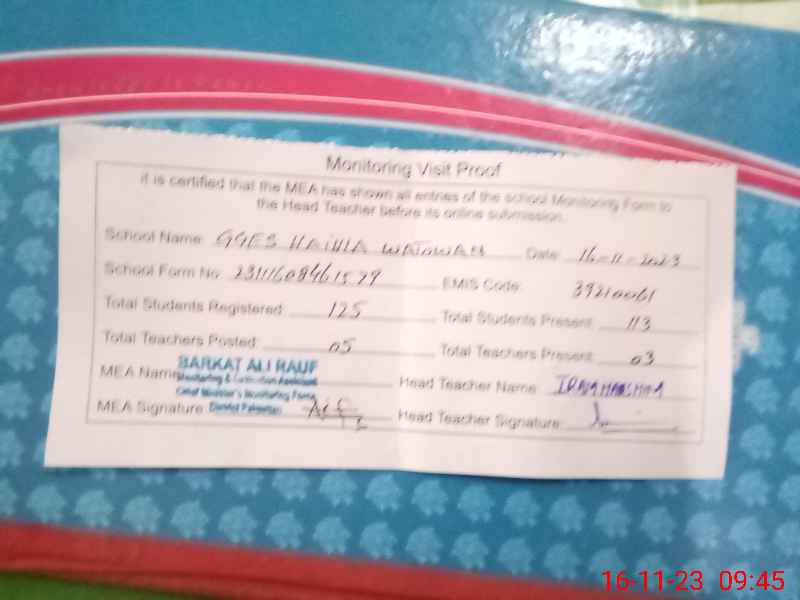 | EMIS Code: 39210061 | Name of School: GGES HAIHLA WATOWAN PAKPATTAN | |||