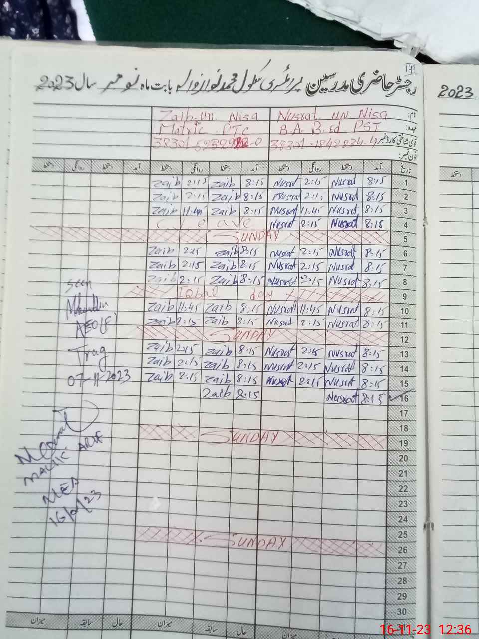 | Name: As**** Fi**** Designation: (School Headmaster's/Headmistress's) PST Phone/Cell Number: 03**** |