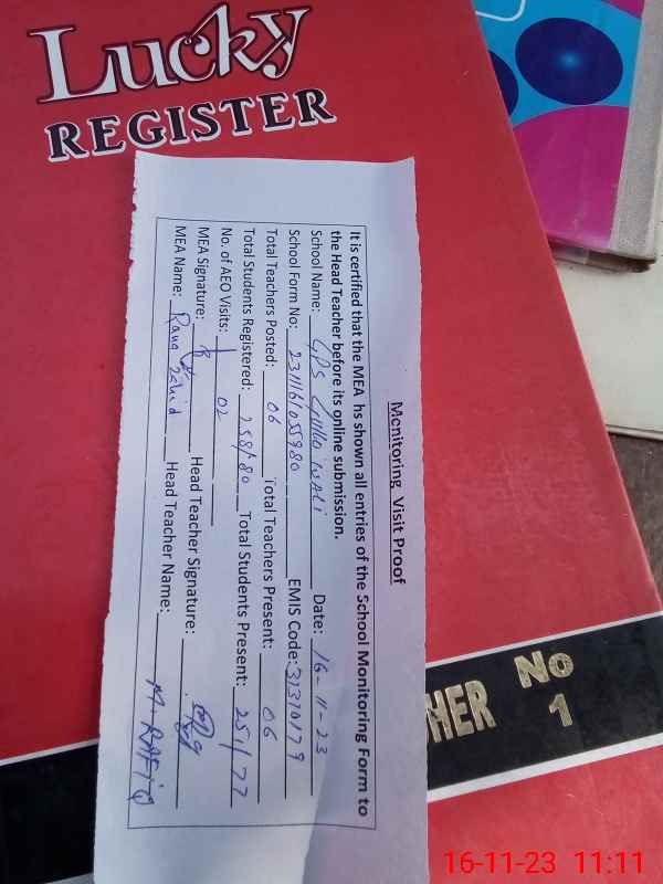 | EMIS Code: 31310179 | Name of School: GPS GULOOWALI (After Noon) | |||