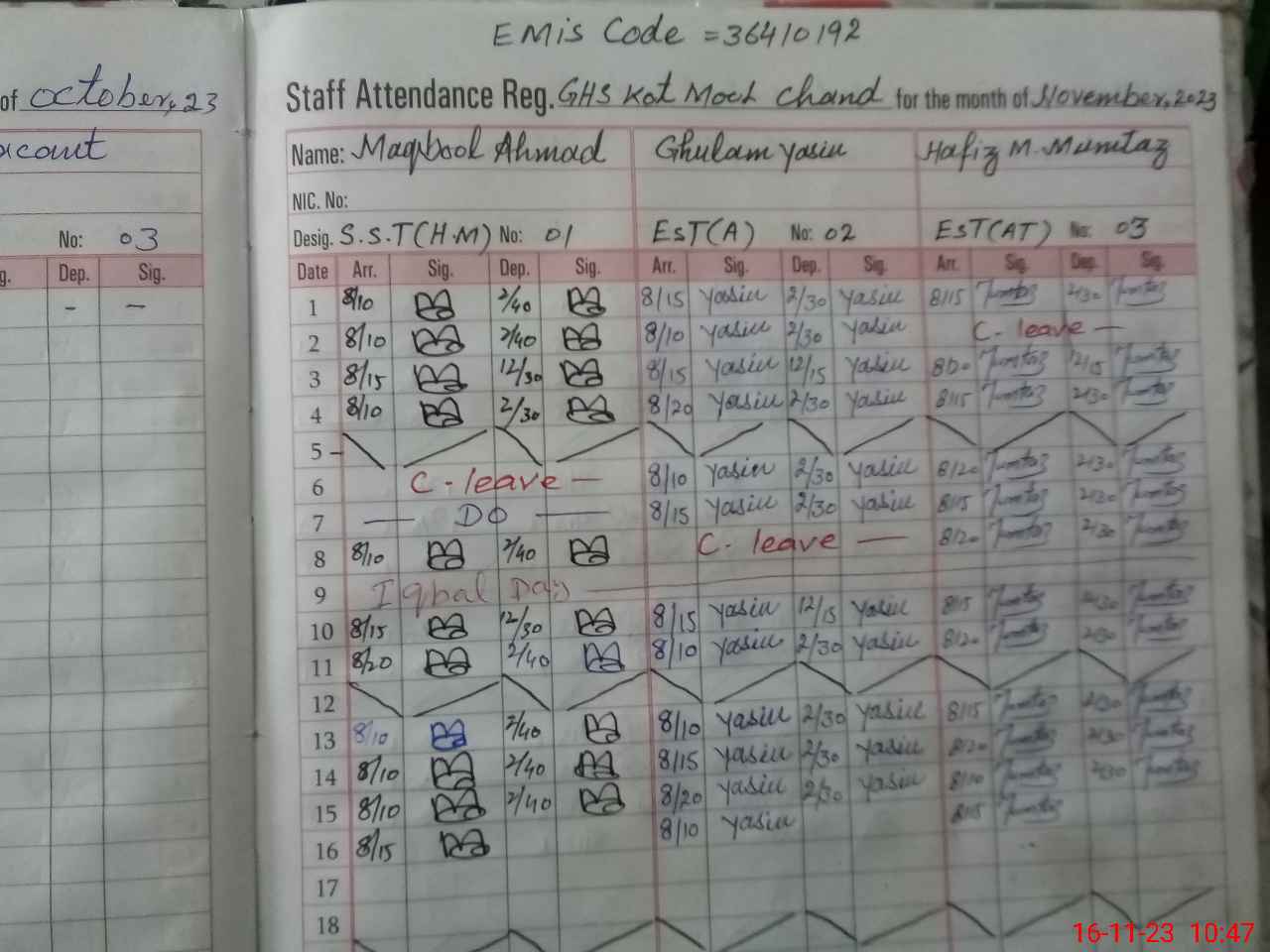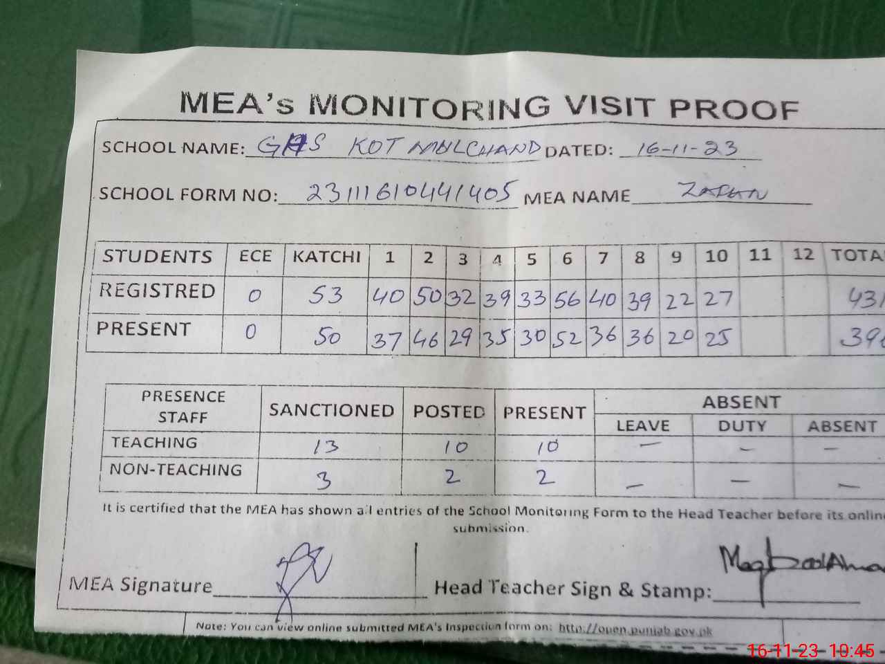 | EMIS Code: 36410192 | Name of School: GHS KOT MULCHAND, KABIRWALA | |||