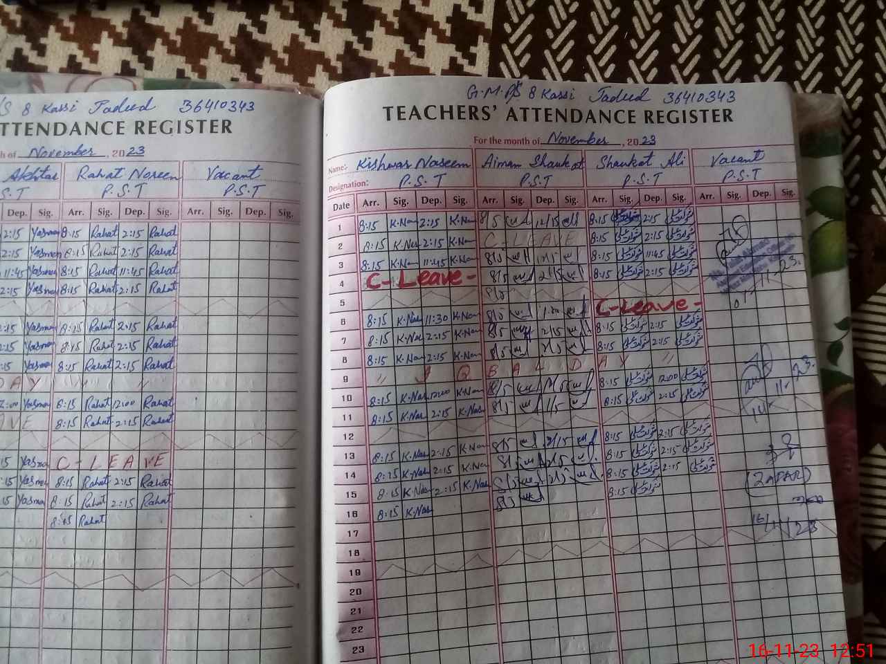 | Name: UZ**** AS**** Designation: (School Headmaster's/Headmistress's) PST Phone/Cell Number: 03**** |