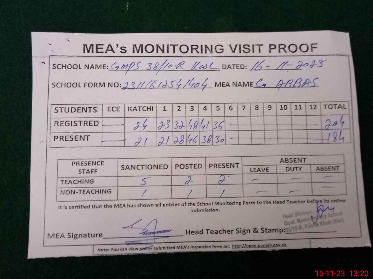 | EMIS Code: 36420438 | Name of School: GMPS 38/10-R, KACHA KHUH | |||
