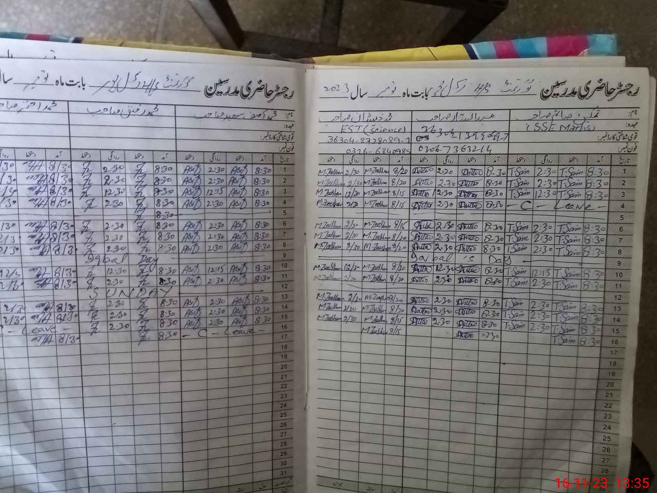 | CNIC | Full Name | Designation | R/C | Absence During Last Calender Month |