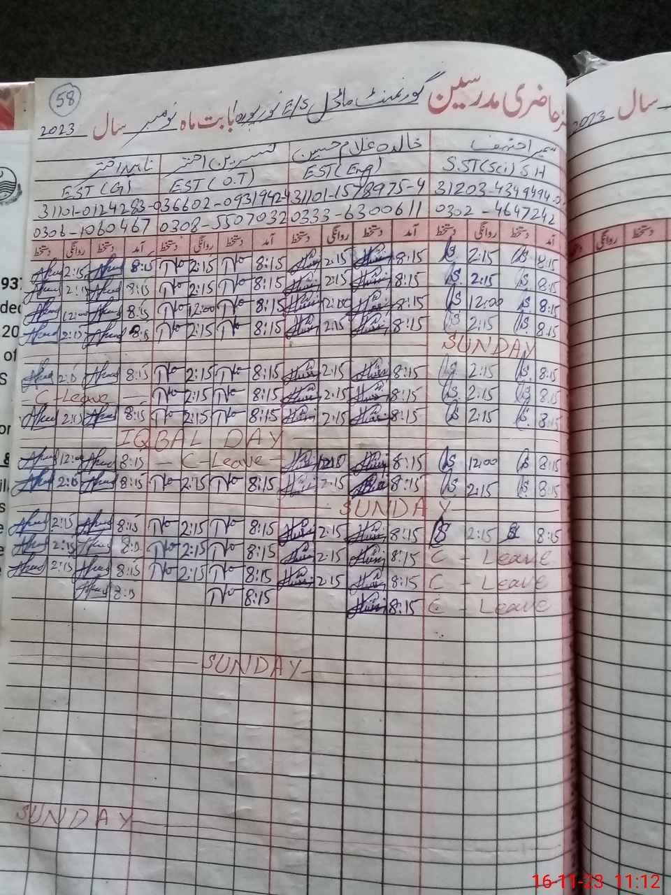 | Name: Sa**** Zu**** Designation: (School Headmaster's/Headmistress's) EST Phone/Cell Number: 03**** |