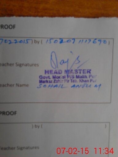 | Name: Ab**** Hy**** Designation: (School Headmaster's/Headmistress's) PST Phone/Cell Number: 03**** |