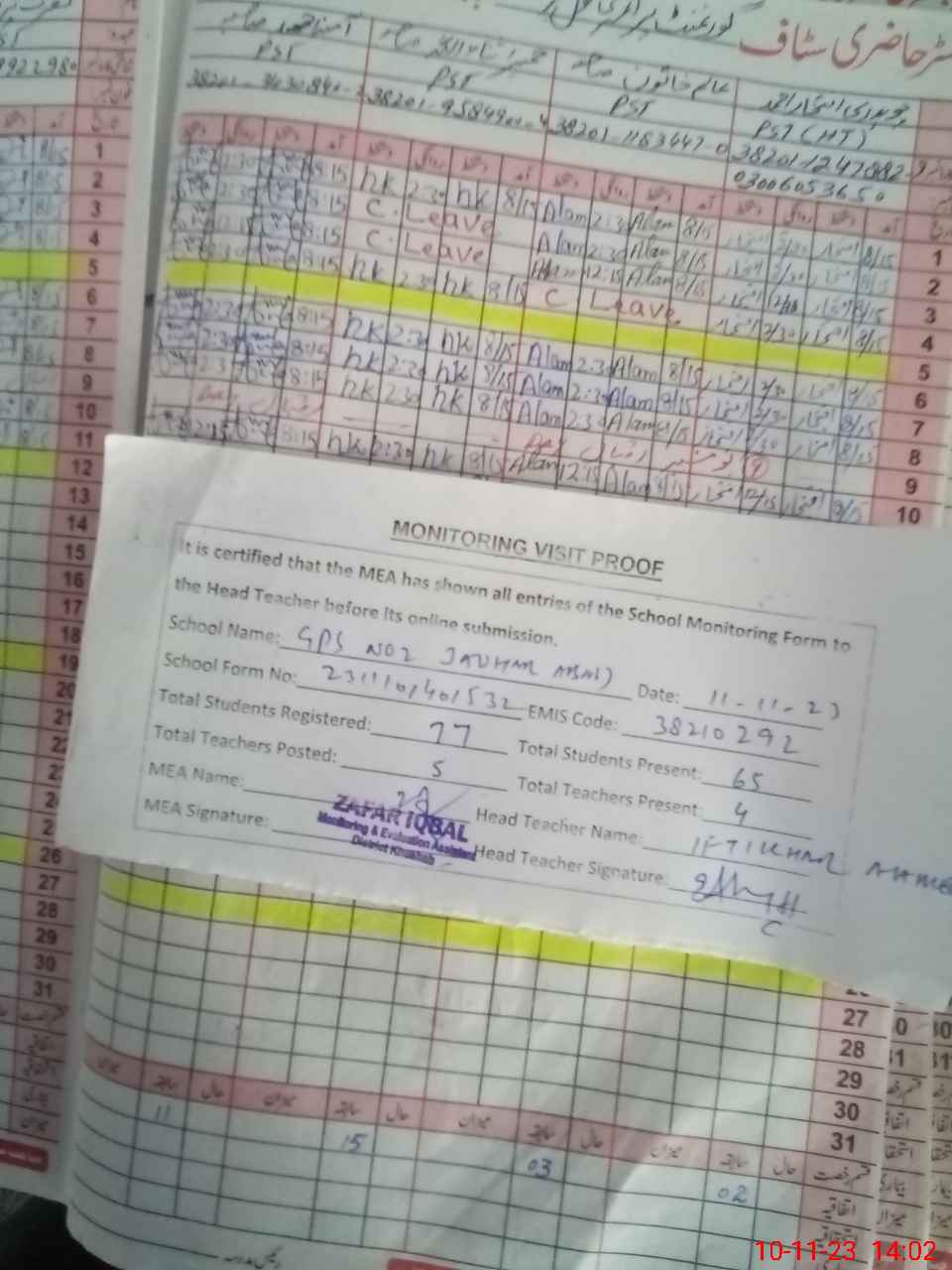 | EMIS Code: 38210292 | Name of School: GPS NO. 2 JAUHARABAD | |||