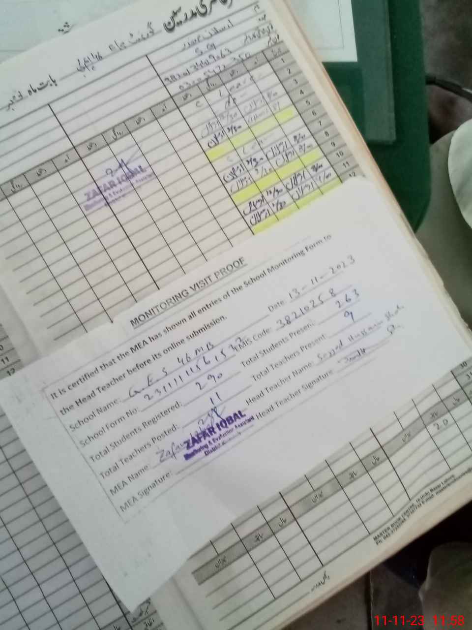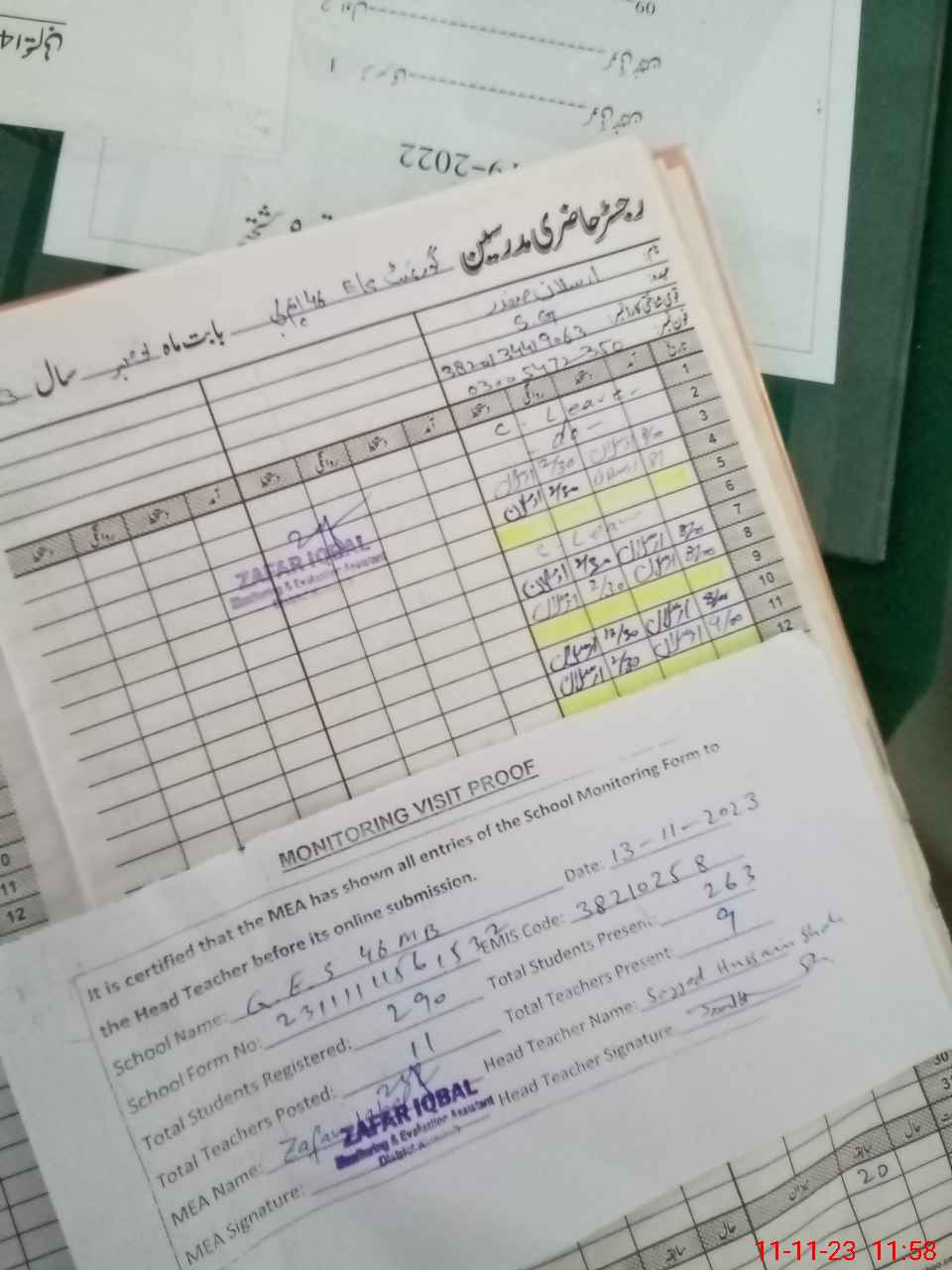 | Attendance Register | Head Teacher | MEA with School | Visit Proof |