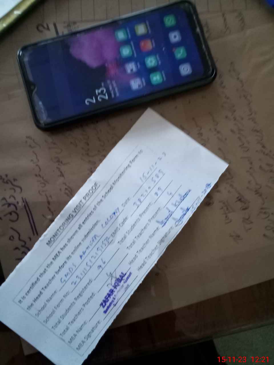 | Attendance Register | Head Teacher | MEA with School | Visit Proof |