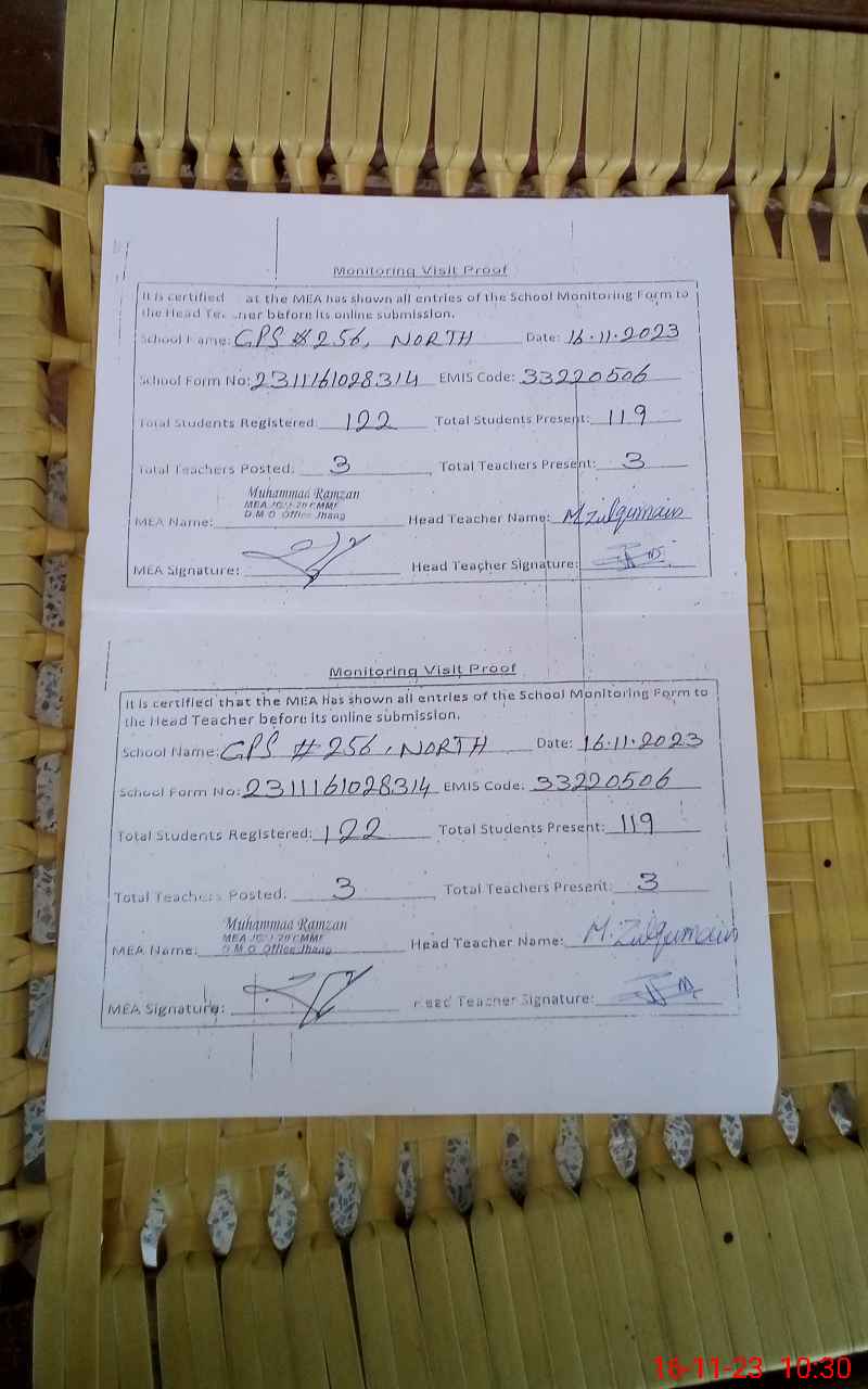 | EMIS Code: 33220506 | Name of School: GPS CHAK NO 256 JB NORTH | |||