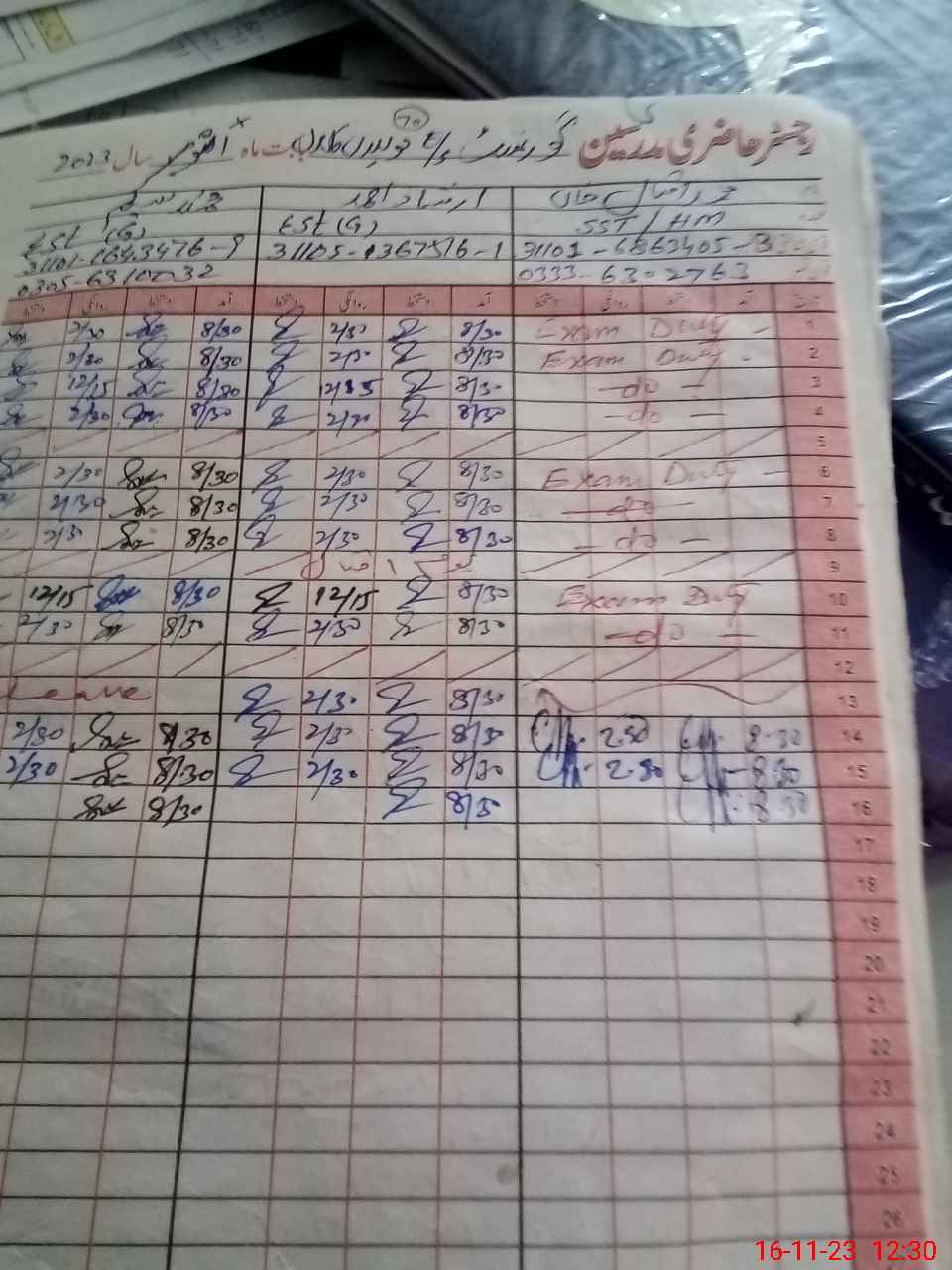 | Name: MU**** Iq**** Designation: (School Headmaster's/Headmistress's) S.S.T.(Arts) Phone/Cell Number: 03**** |