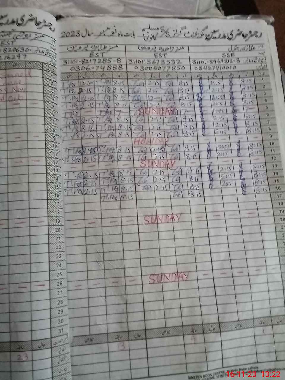 | CNIC | Full Name | Designation | R/C | Absence During Last Calender Month |