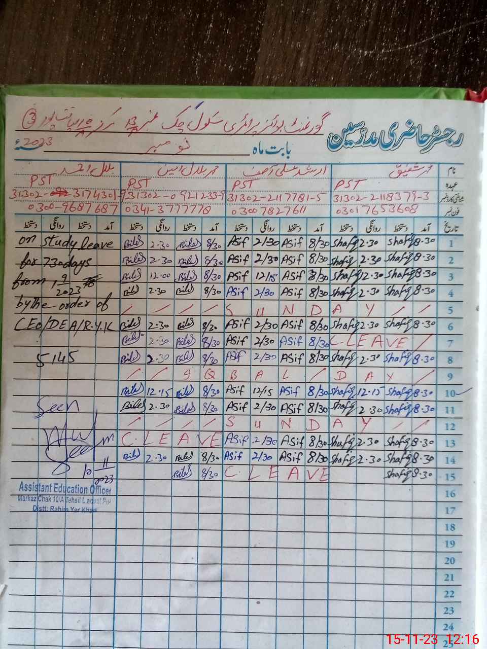 | Name: Mu**** Sh**** Designation: (School Headmaster's/Headmistress's) PST/PTC/JV Phone/Cell Number: 03**** |
