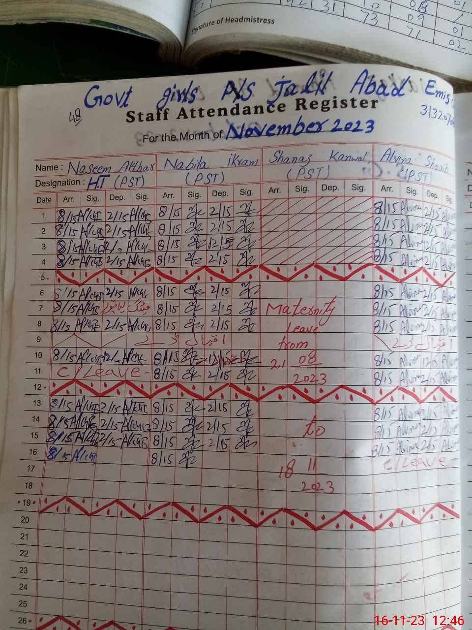 | 31**** | Sh**** Ka**** | 1 | 1 | 0 | 0 | 0 | 0 | 0 | 0 | 0 | 0 | 0 | Maternity |