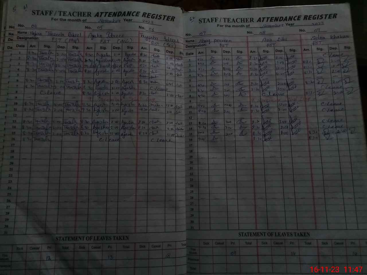 | Remarks (Use Separate Page if Required): NSB record not updated in PMIU and SIS both apps D3 form is incomplete some entries are made with lead pencil Students of class Nursery listed in PMIU app are not updated A few students are in same class some students are in class 2 some students are in class 1 while some students have left school All the three leave applications are without approval so I marked them as un authorised absent | |||||