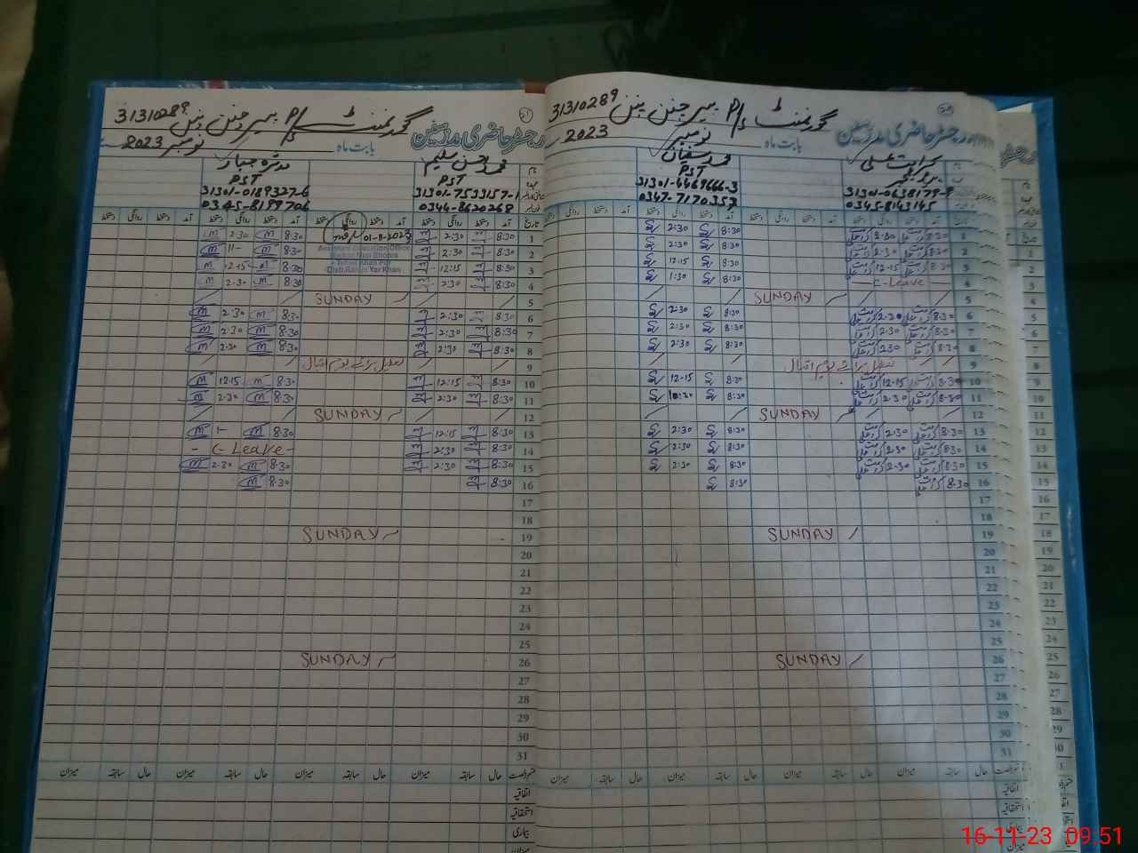 | CNIC | Full Name | Designation | R/C | Absence During Last Calender Month |