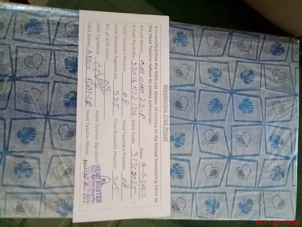 | EMIS Code: 31310025 | Name of School: GHS CHAK NO. 23/P | |||