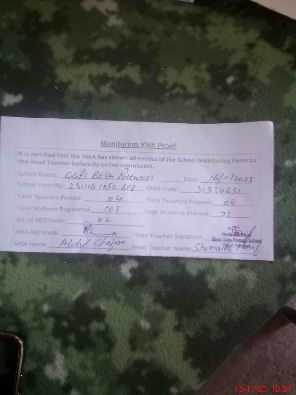 | EMIS Code: 31330631 | Name of School: GGPS BASTI PATWARI | |||