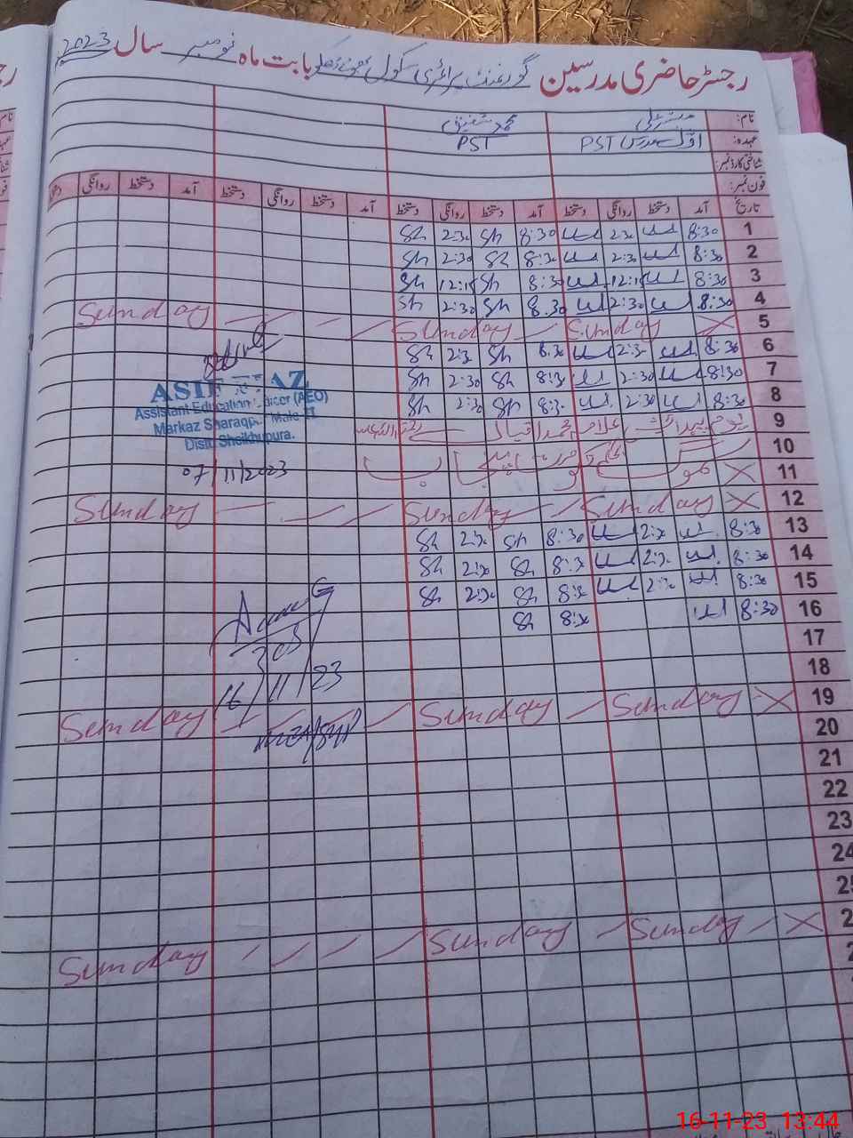 | District: SHEIKHUPURA | Tehsil: SHARAQPUR | Markaz: GHAZI PUR-MALE | Level: Primary | |