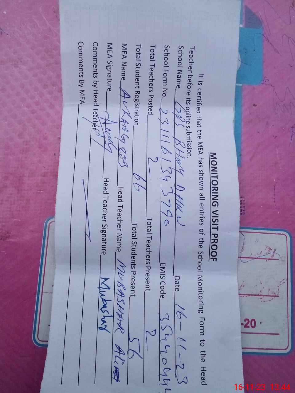 | EMIS Code: 35440444 | Name of School: GPS BHOY DHKU | |||