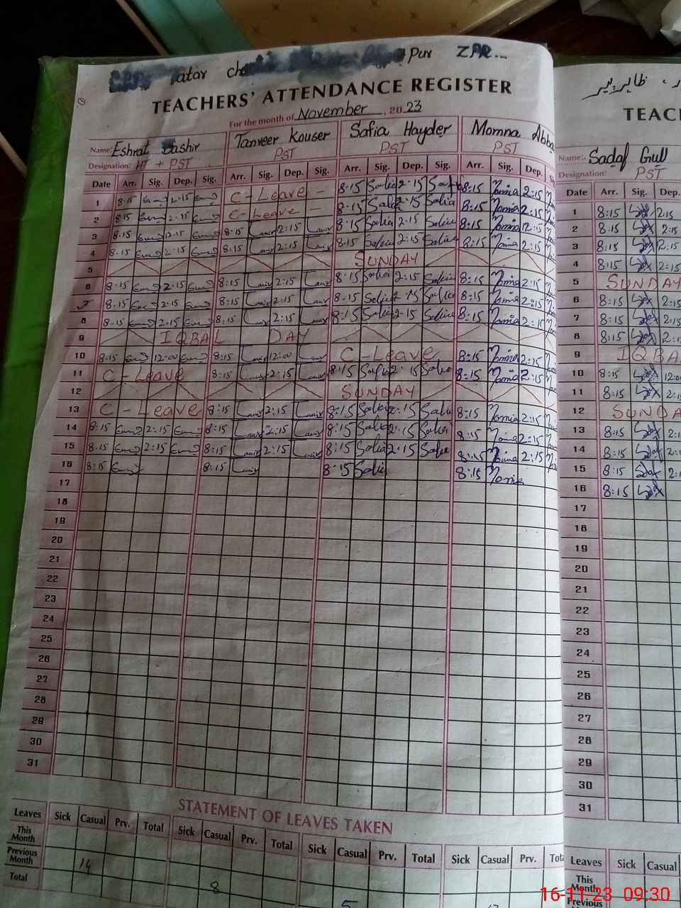 | CNIC | Full Name | Designation | R/C | Absence During Last Calender Month |
