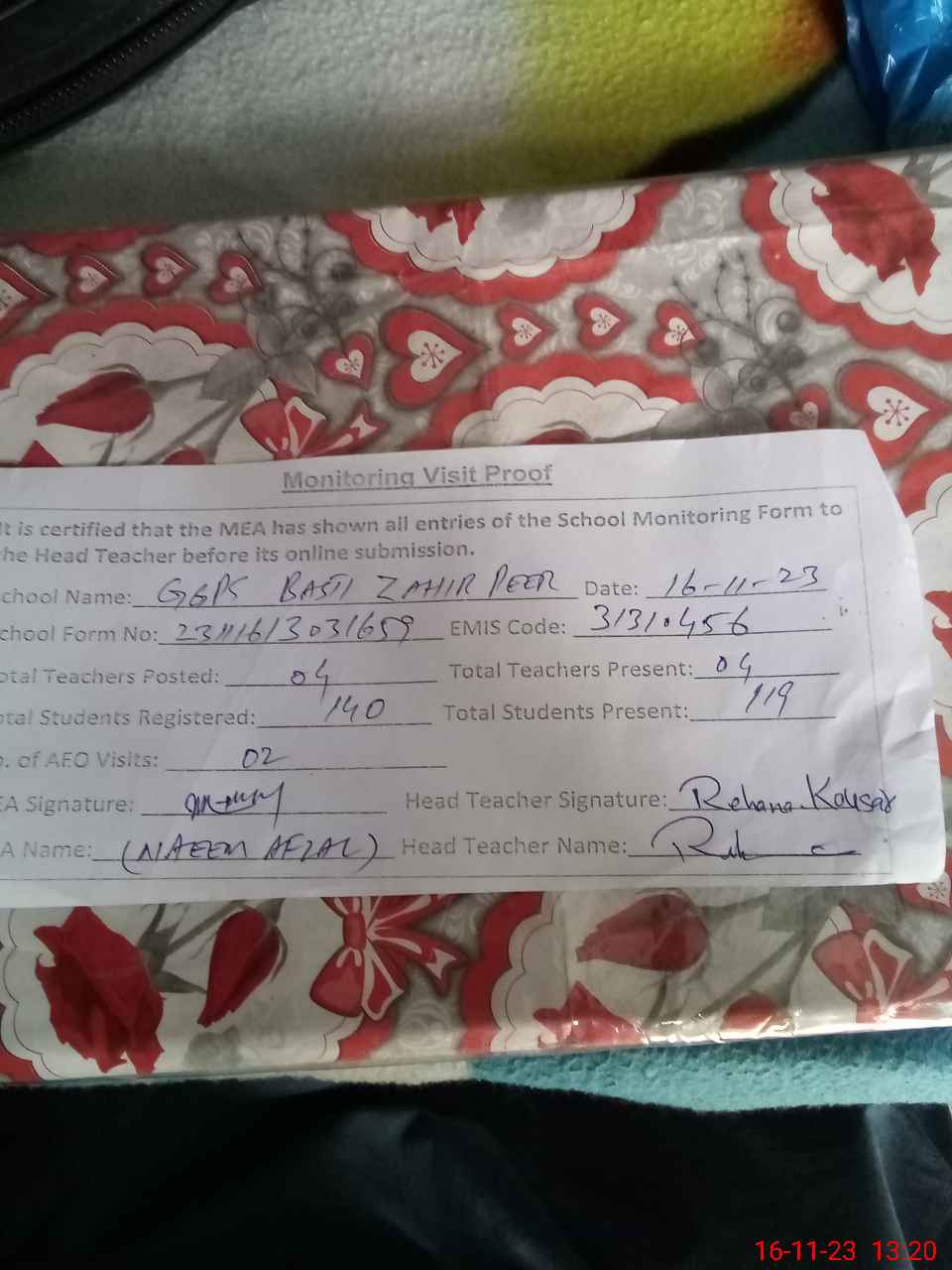 | EMIS Code: 31310456 | Name of School: GGPS BASTI ZAHIR PIR | |||