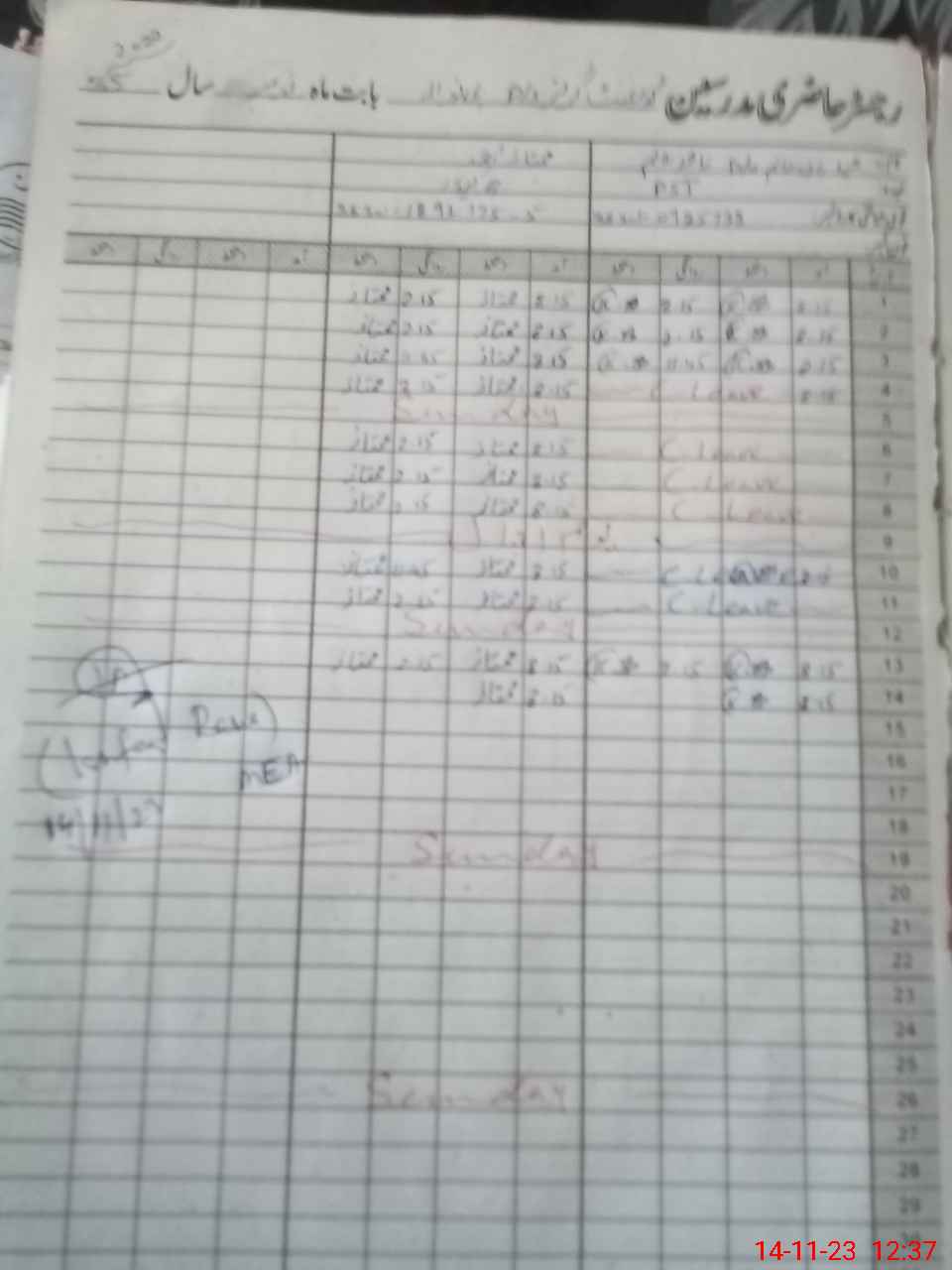| CNIC | Full Name | Designation | R/C | Absence During Last Calender Month |