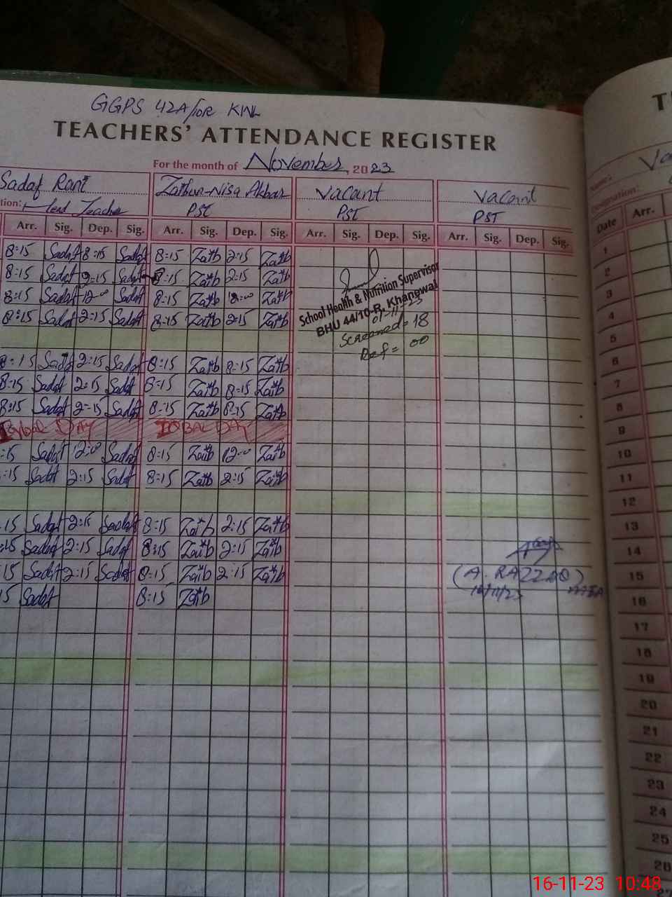 | Name: SA**** RA**** Designation: (School Headmaster's/Headmistress's) PST Phone/Cell Number: 03**** |