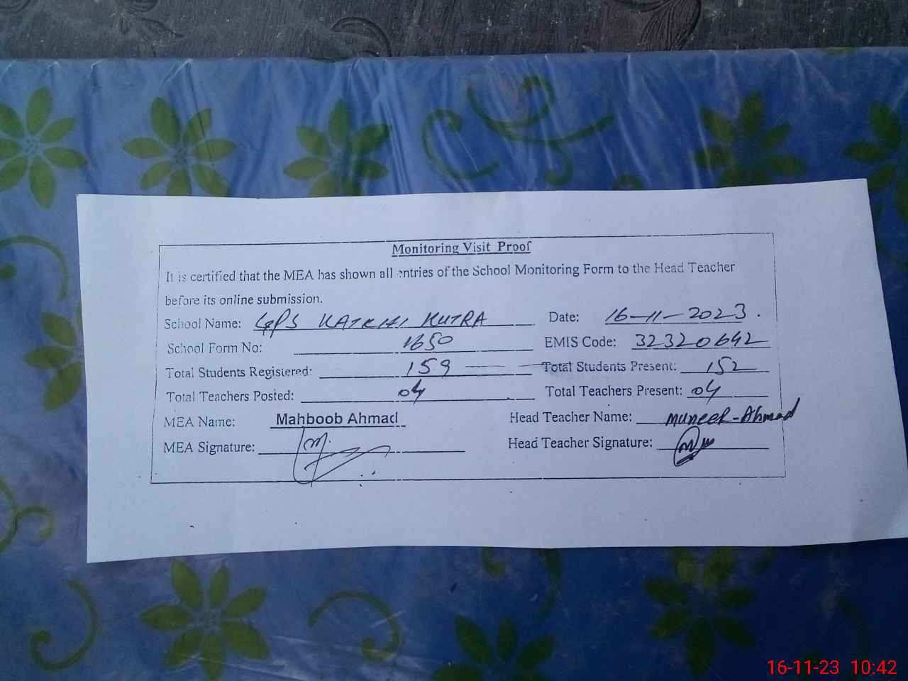 | EMIS Code: 32320642 | Name of School: GPS KACHI KUTRA | |||