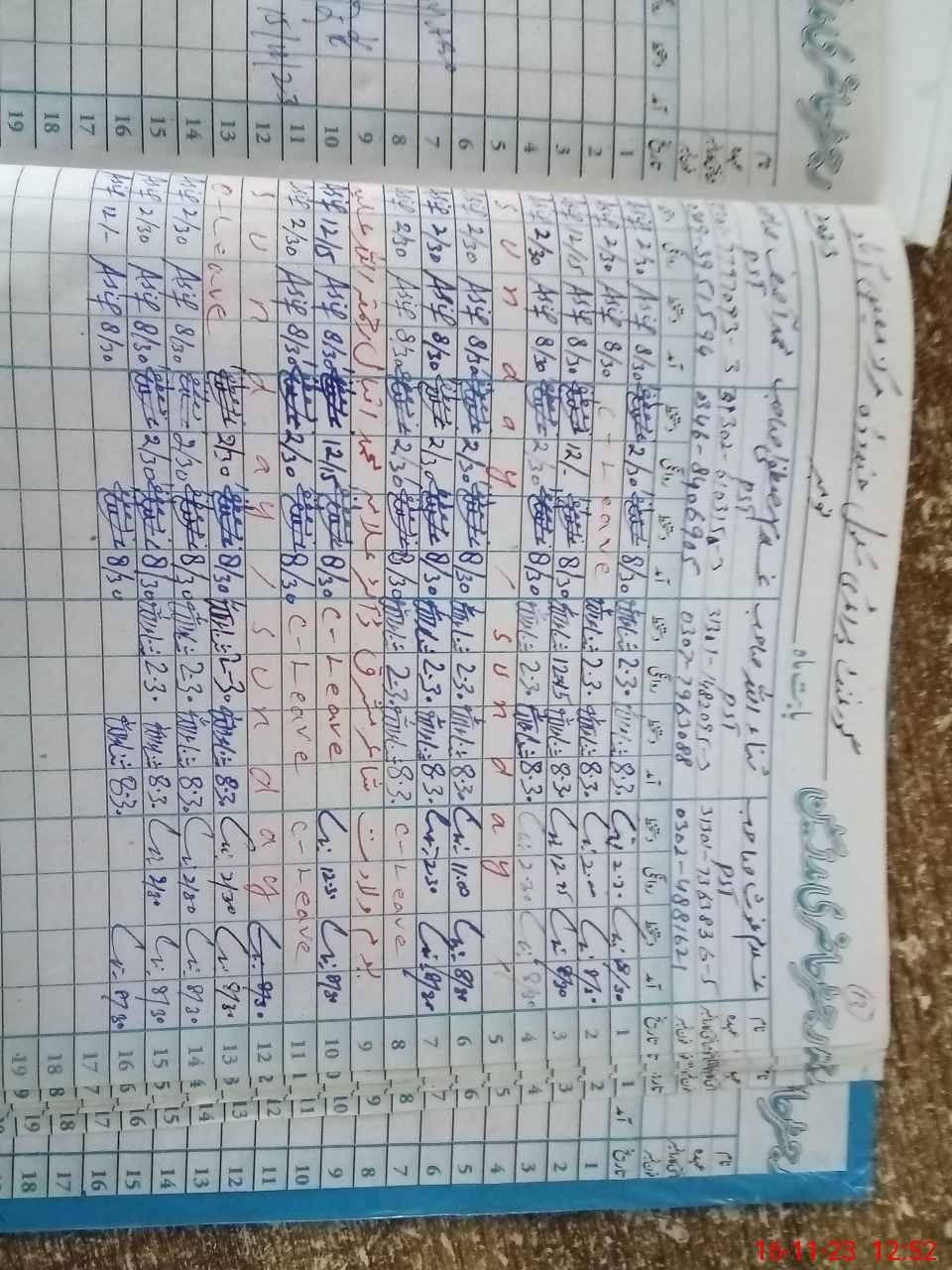 | CNIC | Full Name | Designation | R/C | Absence During Last Calender Month |