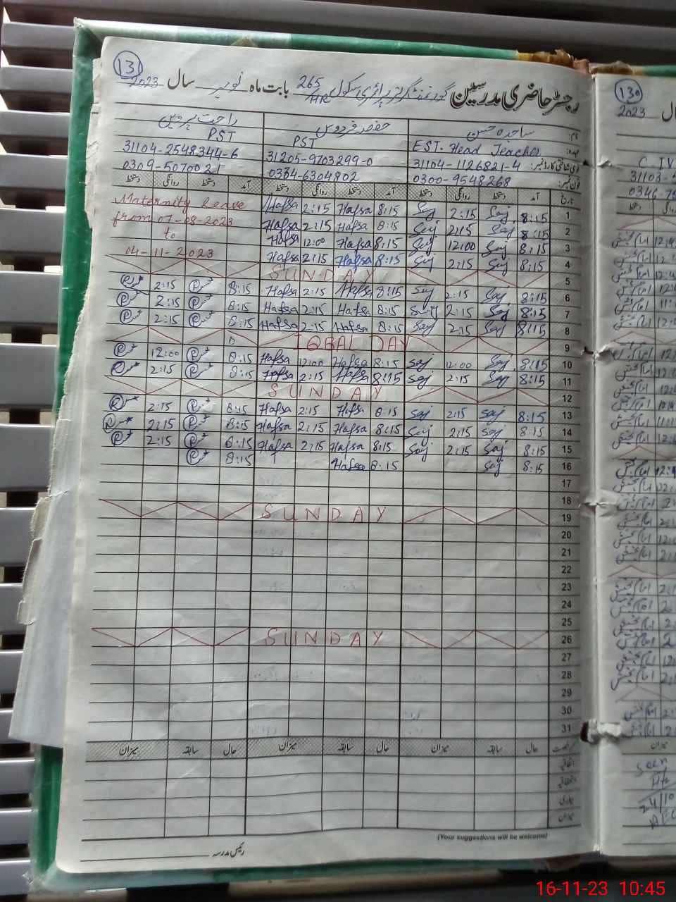 | Name: Sa**** Ha**** Designation: (School Headmaster's/Headmistress's) EST Phone/Cell Number: 03**** |