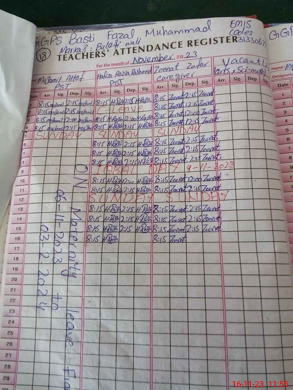 | 31**** | Mu**** Al**** | 1 | 1 | 0 | 0 | 0 | 0 | 0 | 0 | 0 | 1 | Maternity | |