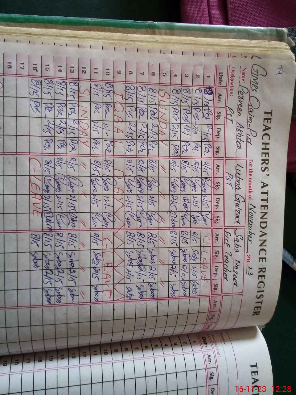 | Leave | Duty | Absent | Maternity | Medical | Ex- Pak |