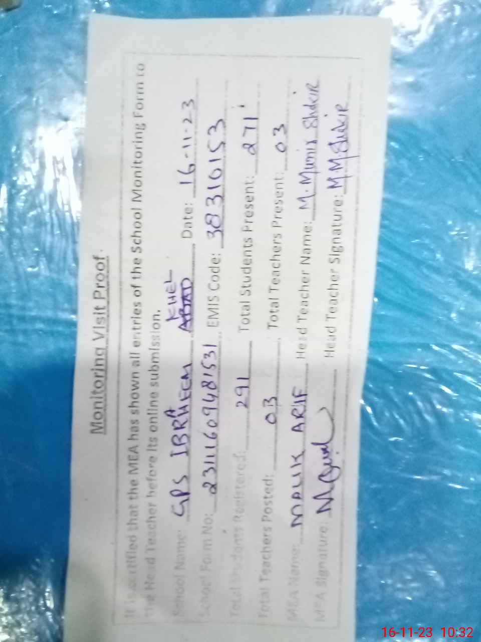 | EMIS Code: 38310153 | Name of School: GPS IBRAHIM KHEL PO TRAGH ISA KHEL MIANWALI | |||