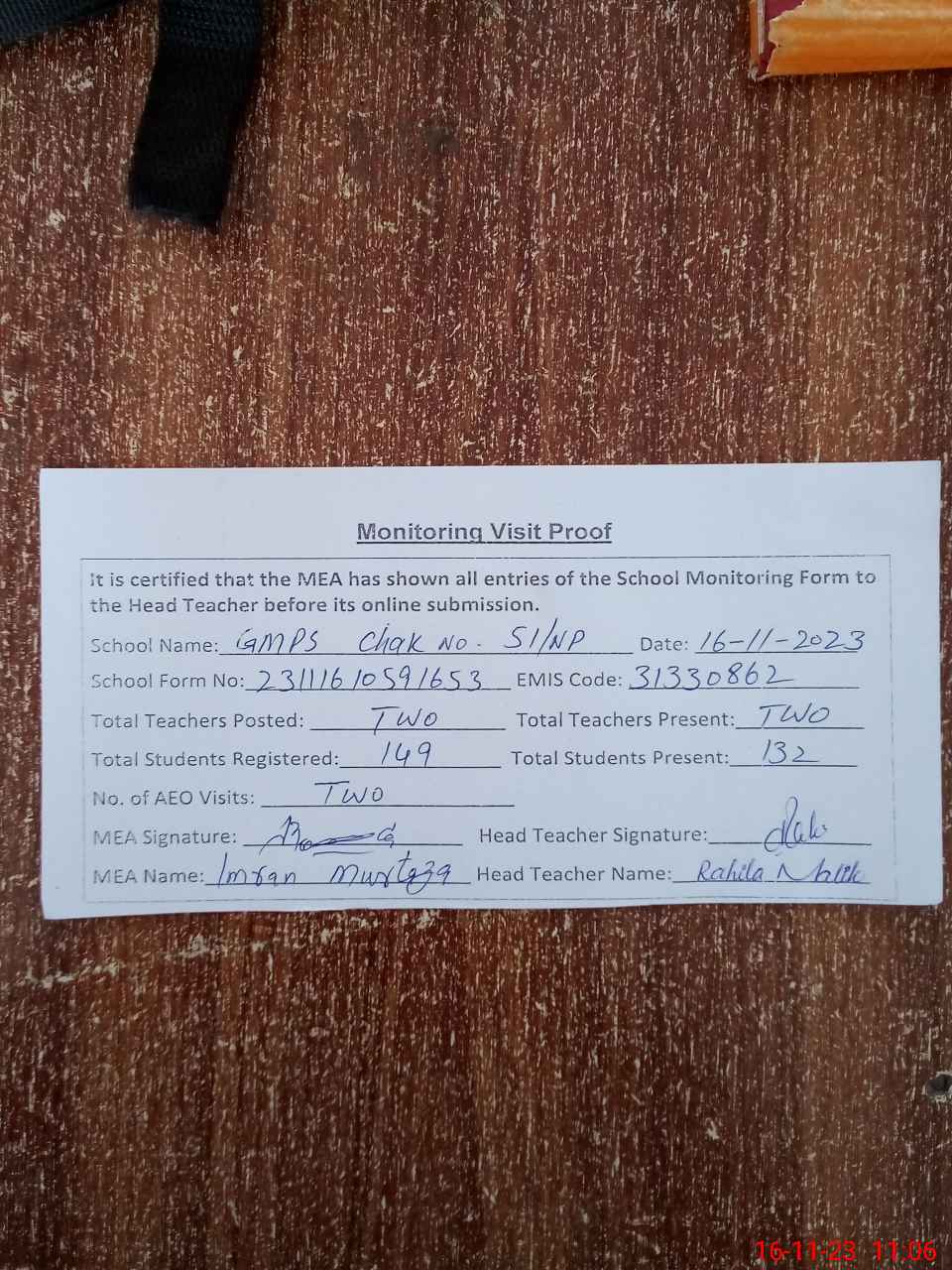 | EMIS Code: 31330862 | Name of School: GMPS CHAK NO.51/NP | |||