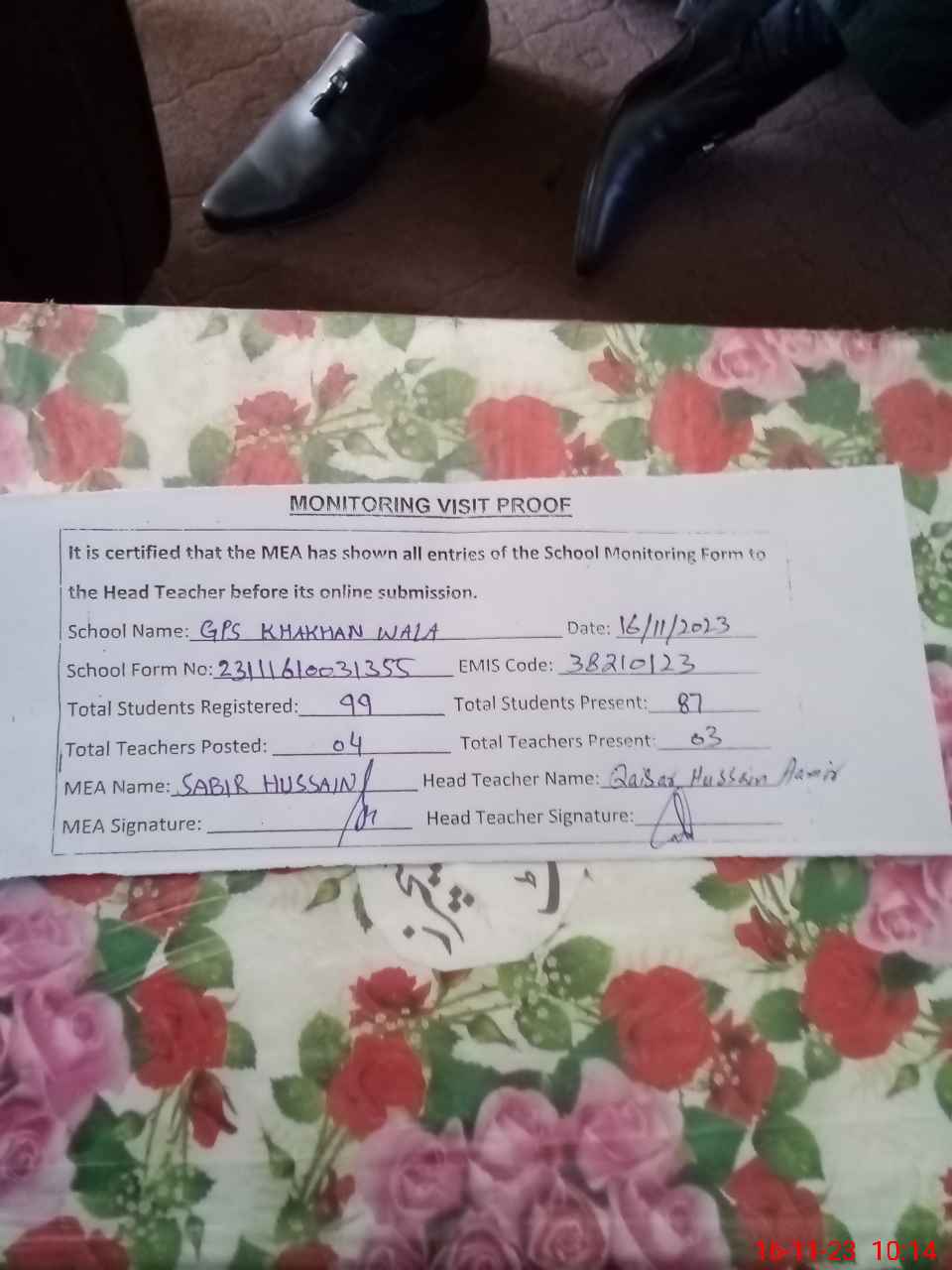 | EMIS Code: 38210123 | Name of School: GPS KHAKHAN WALA | |||