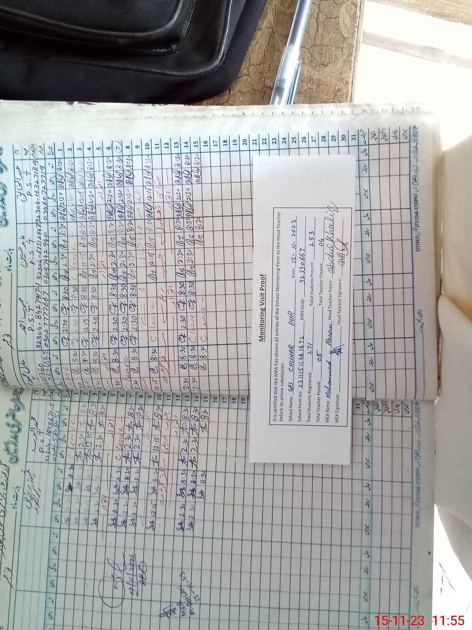 | Attendance Register | Head Teacher | MEA with School | Visit Proof |