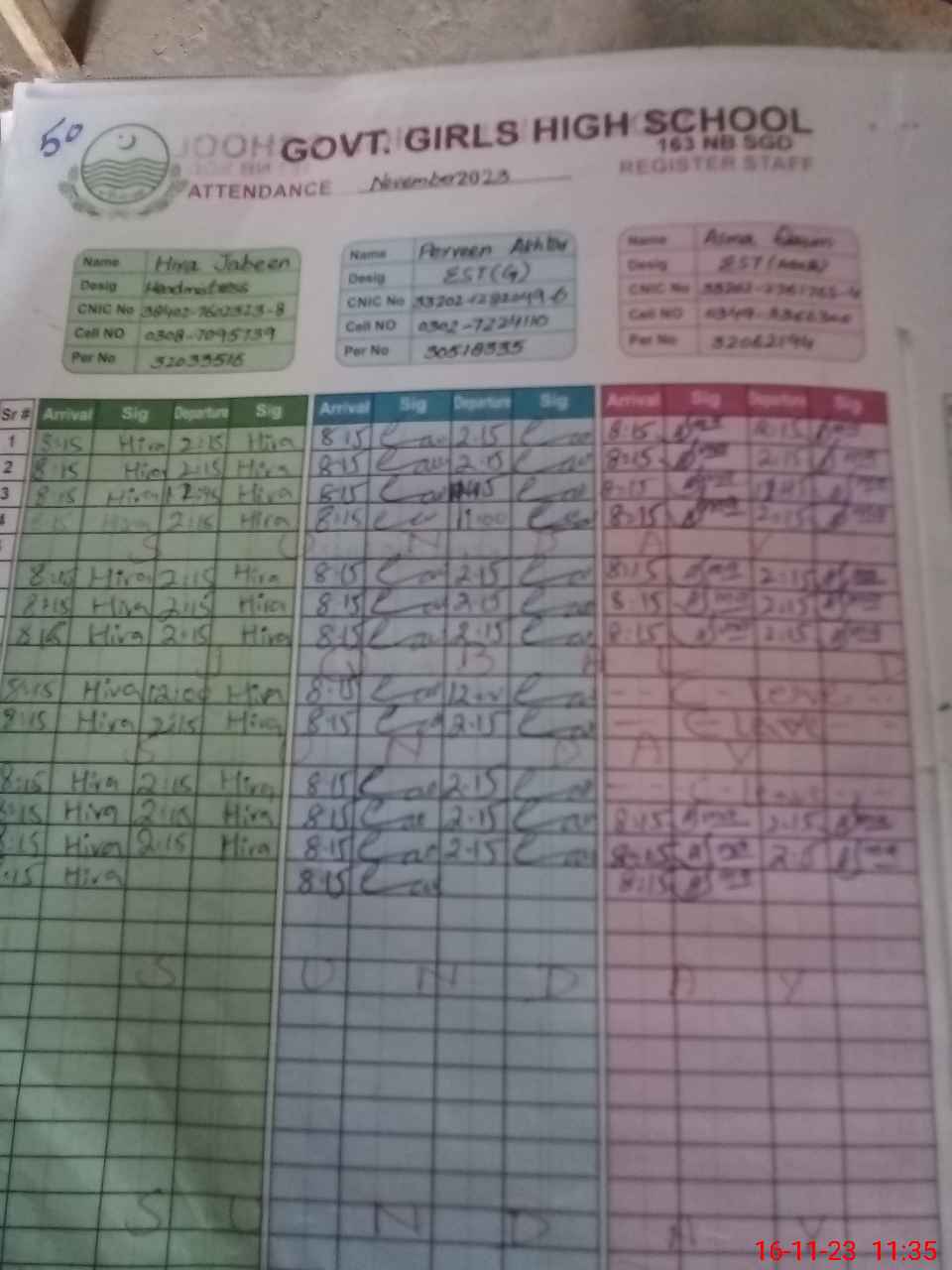 | Name: Hi**** Ja**** Designation: (School Headmaster's/Headmistress's) SSE Phone/Cell Number: 03**** |